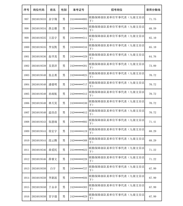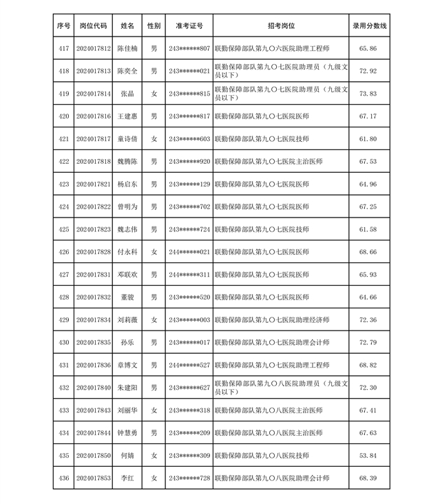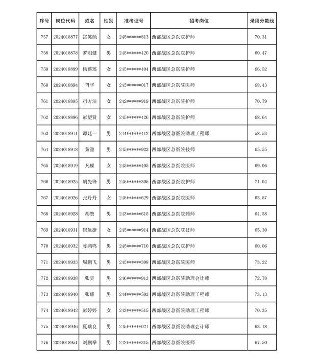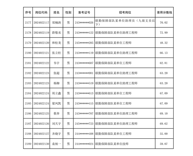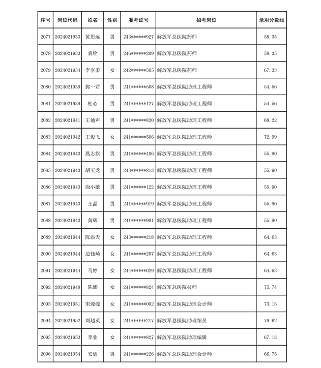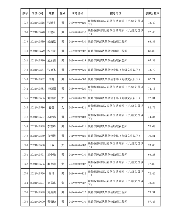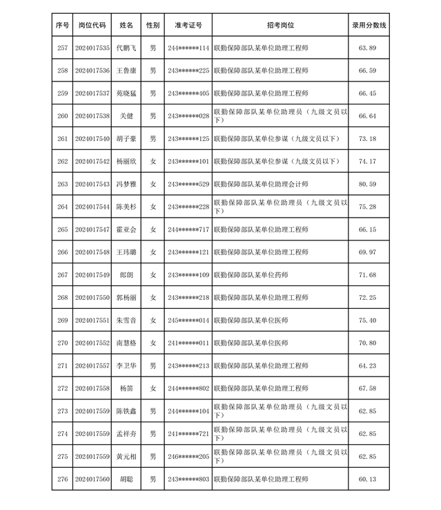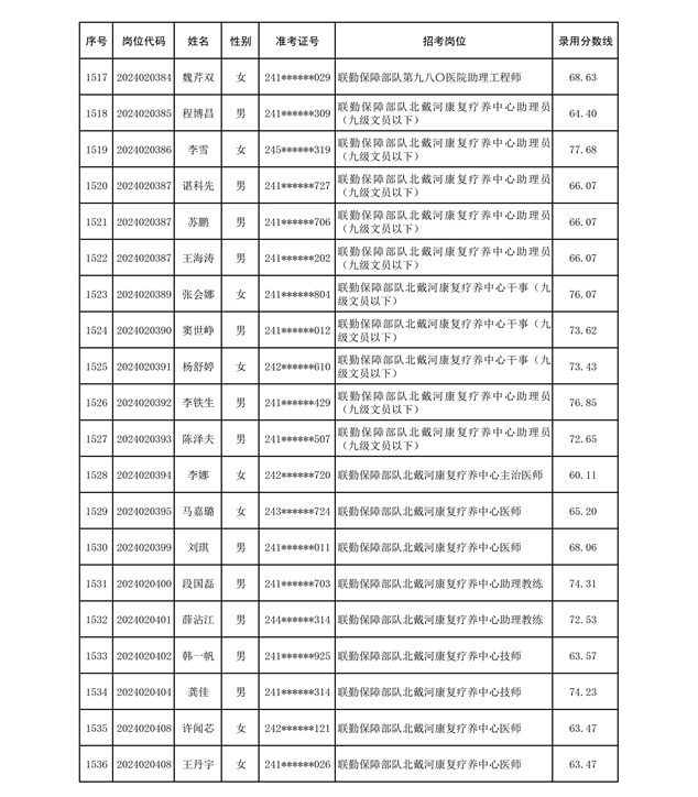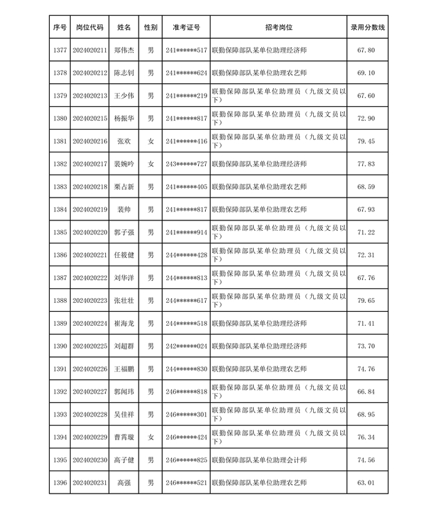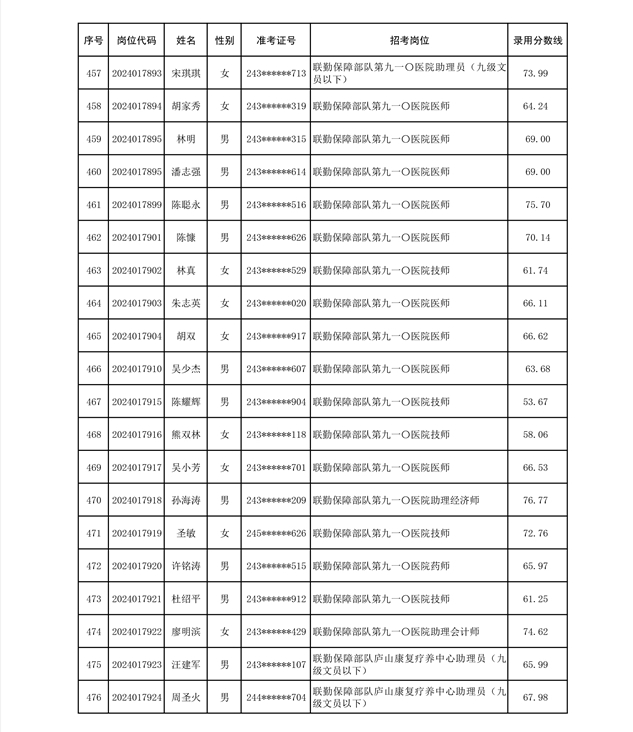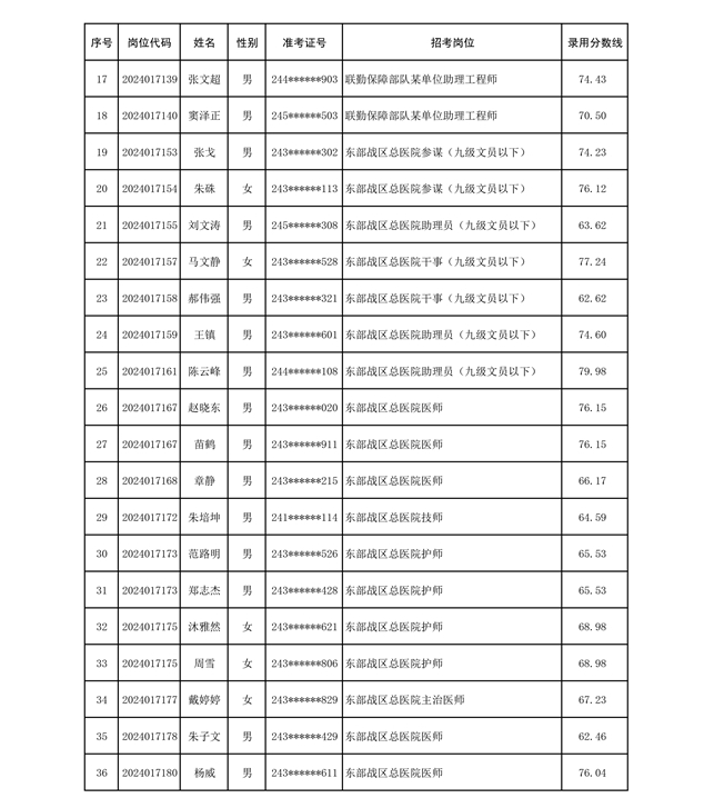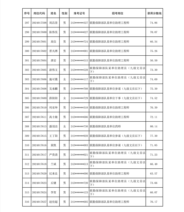 公示联勤保障部队2024年公开招考文职人员第二批拟录用对象名单