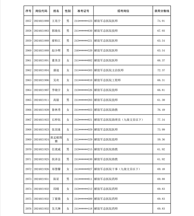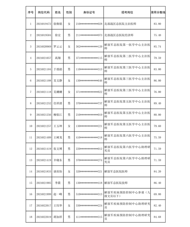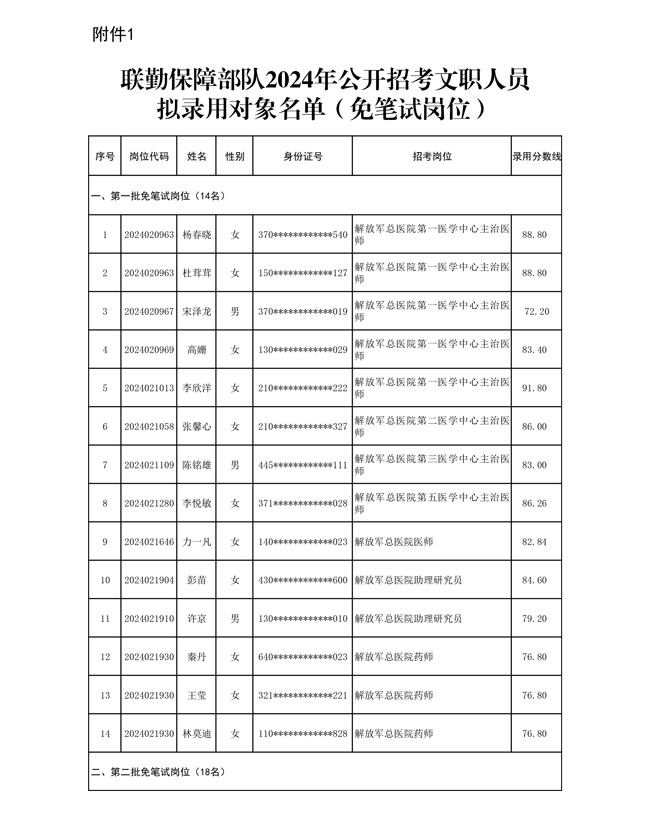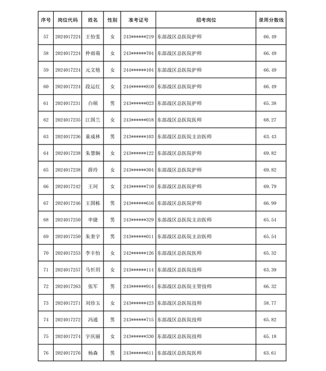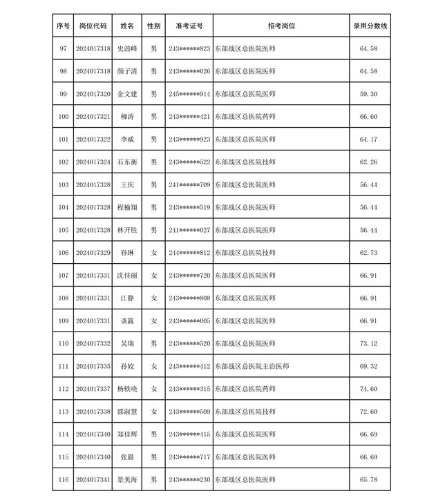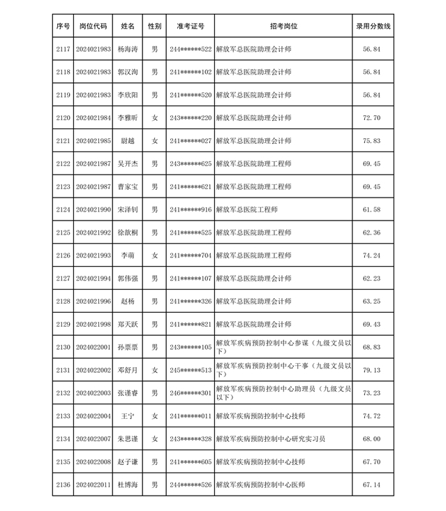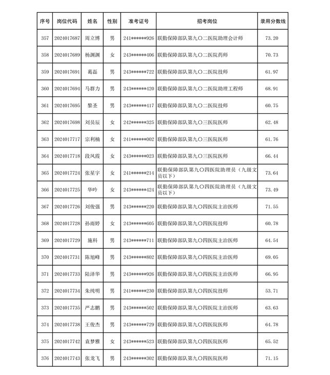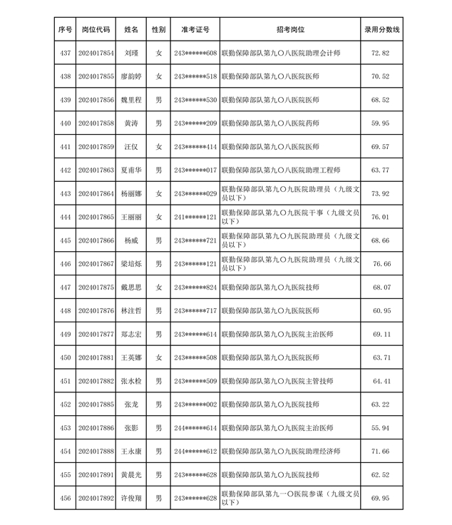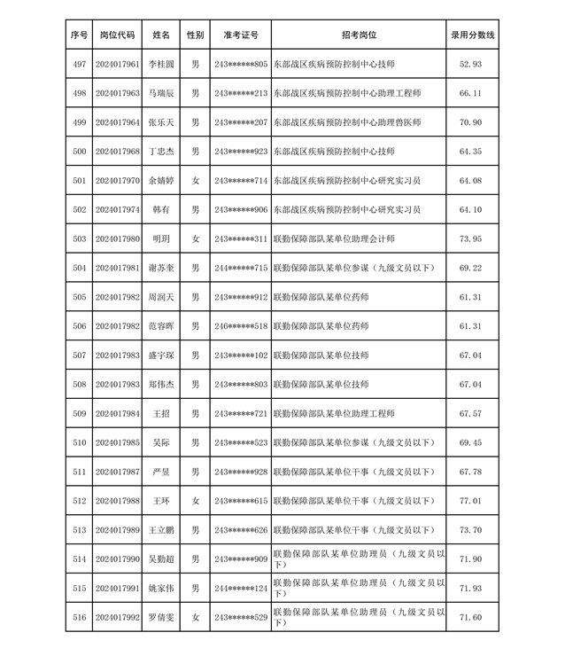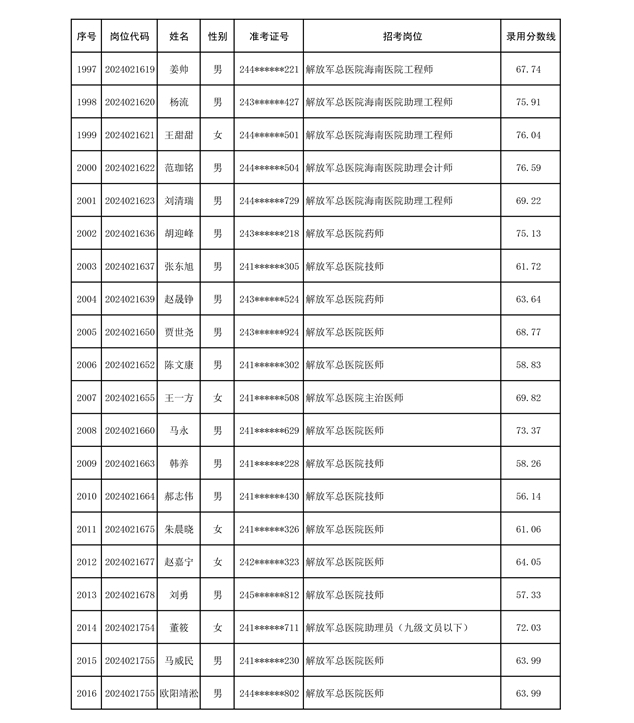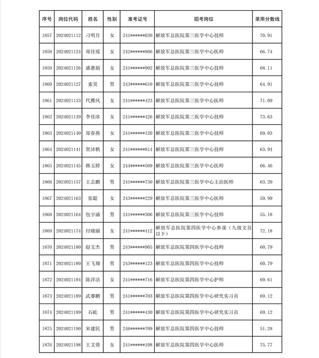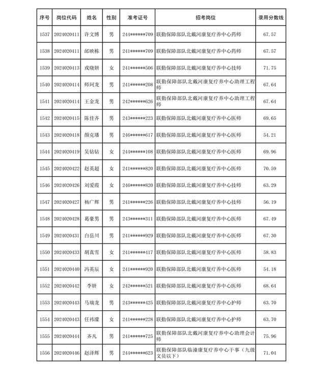 公示联勤保障部队2024年公开招考文职人员第二批拟录用对象名单