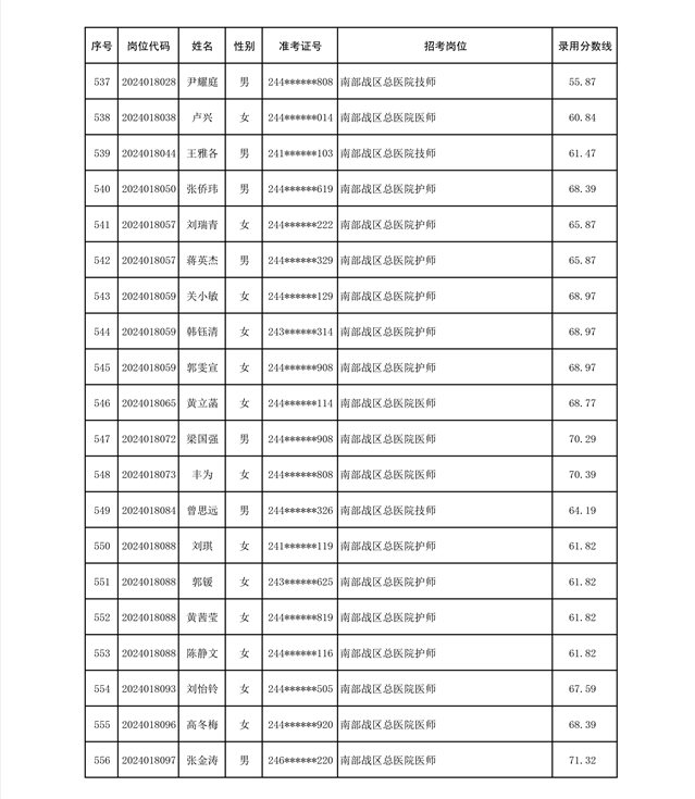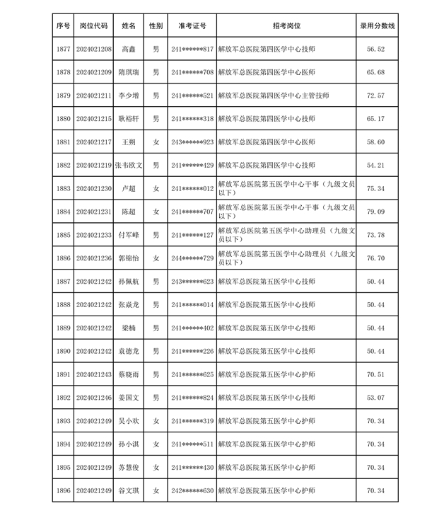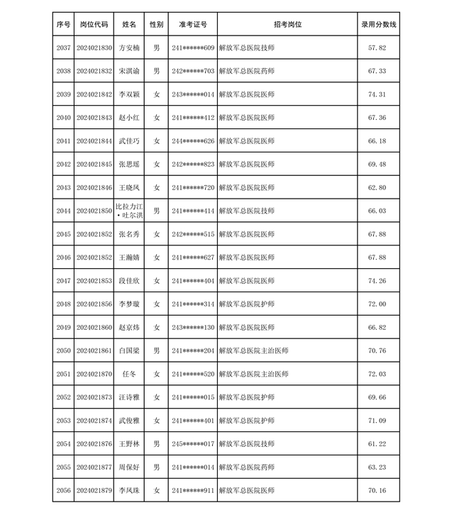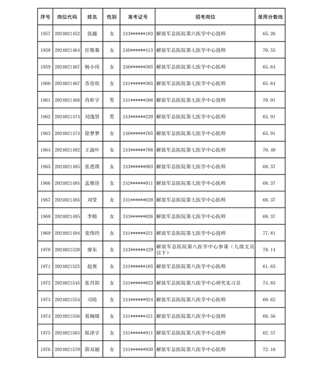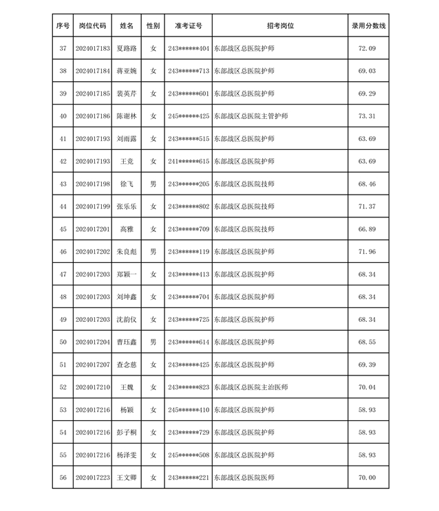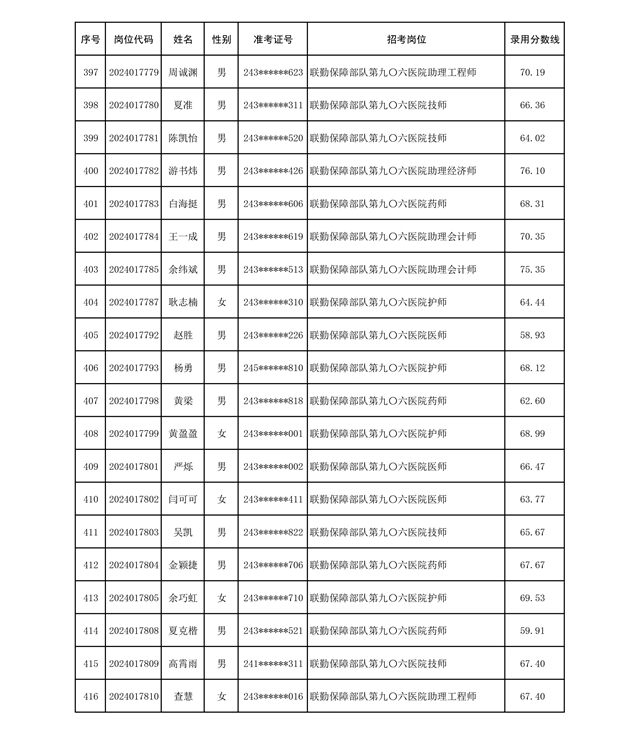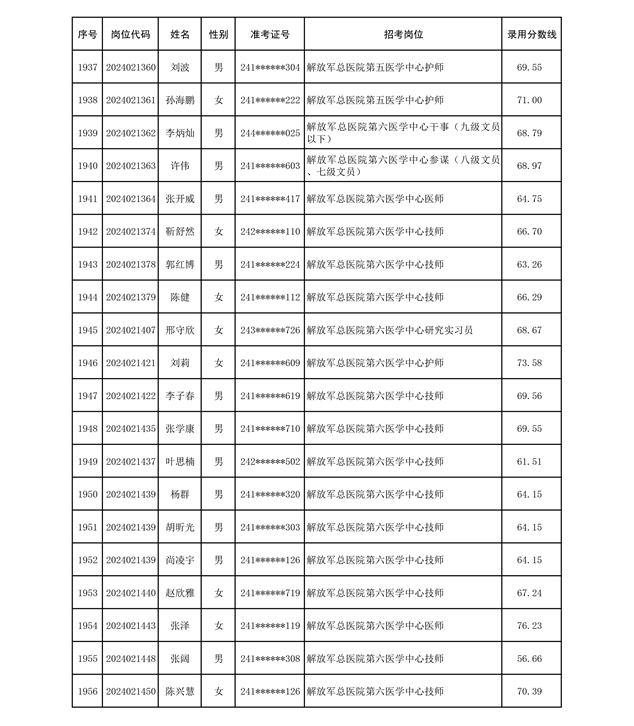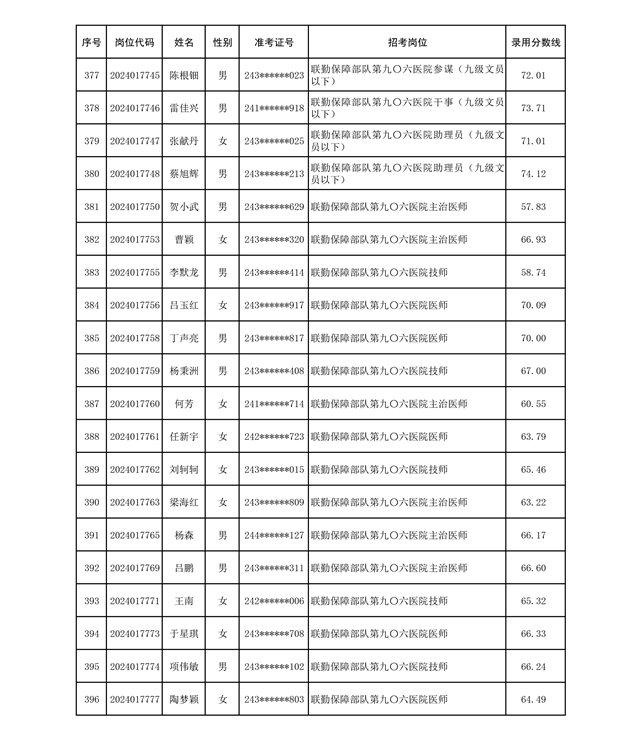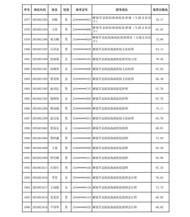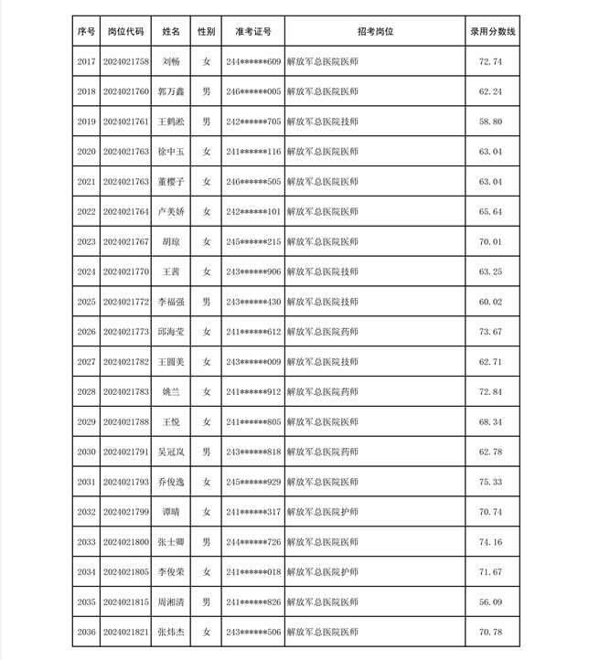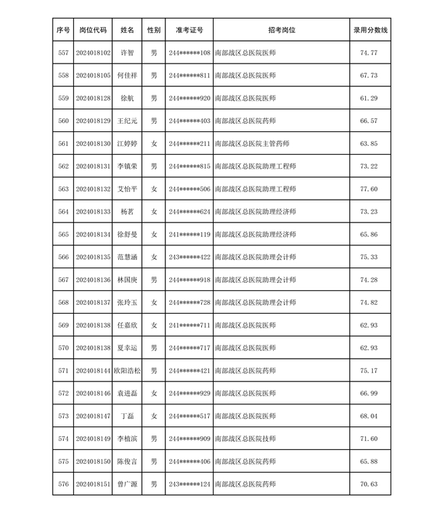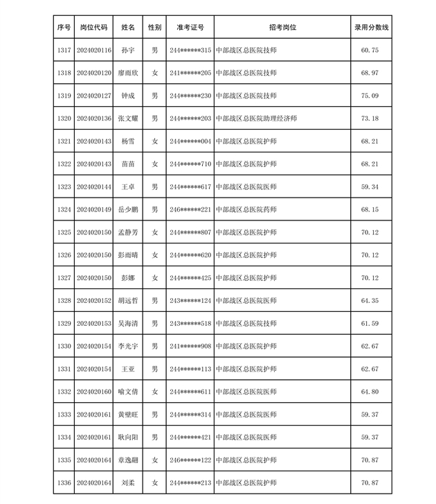 公示联勤保障部队2024年公开招考文职人员第二批拟录用对象名单