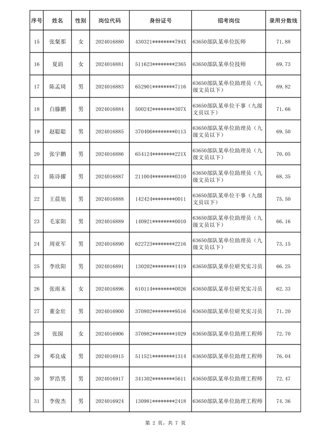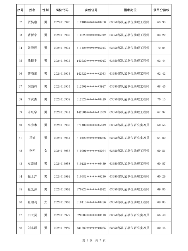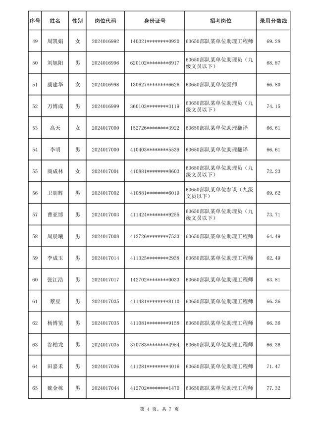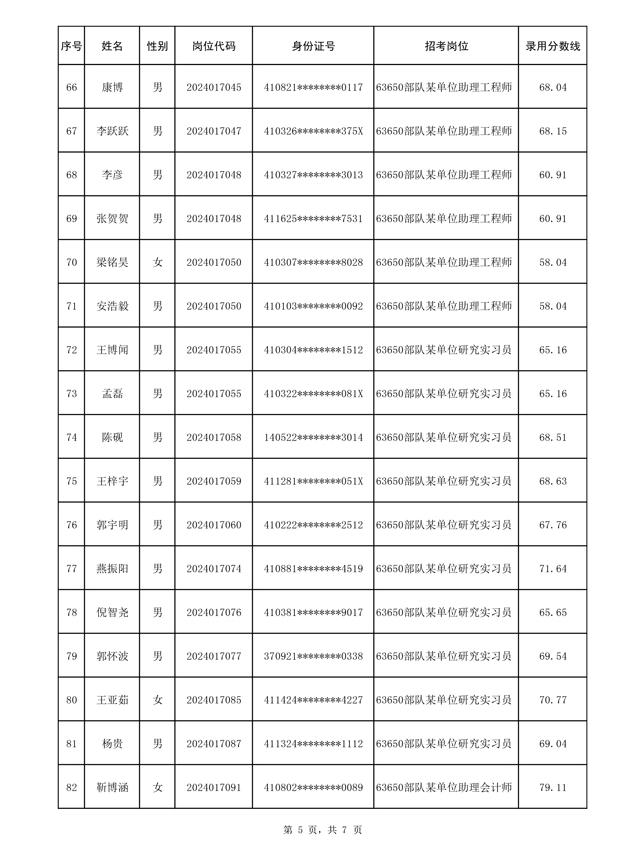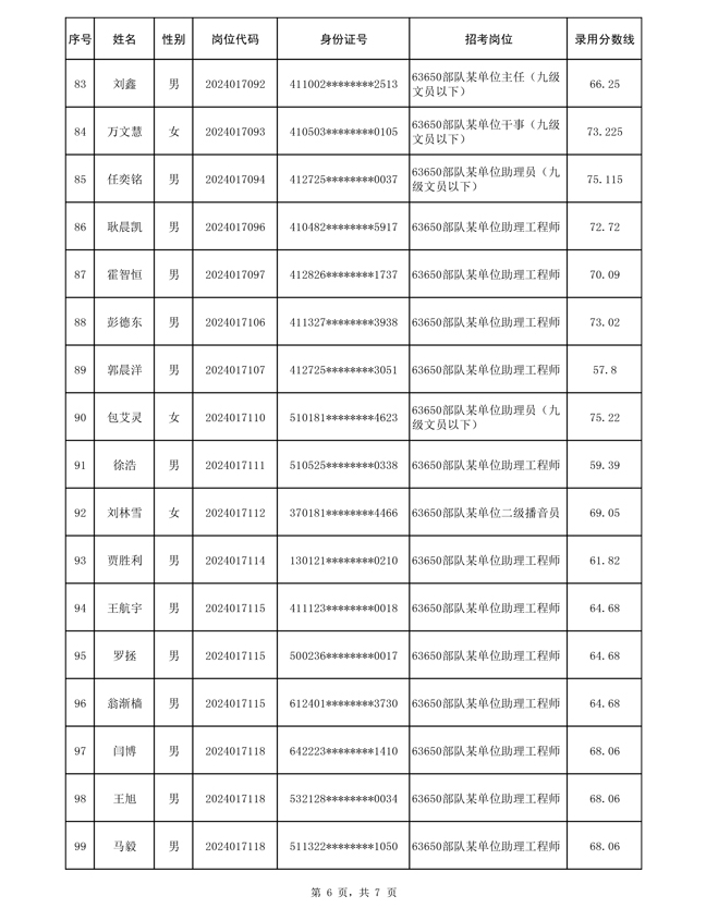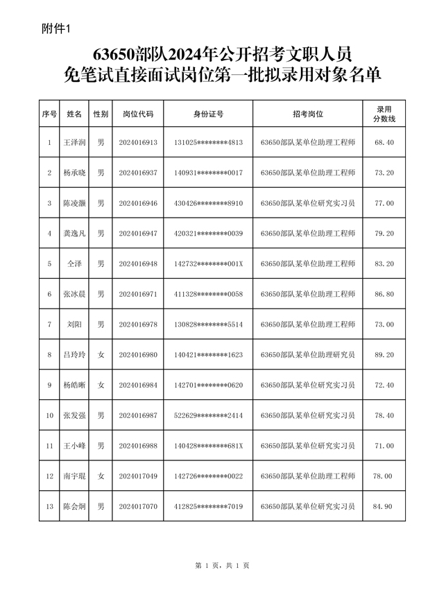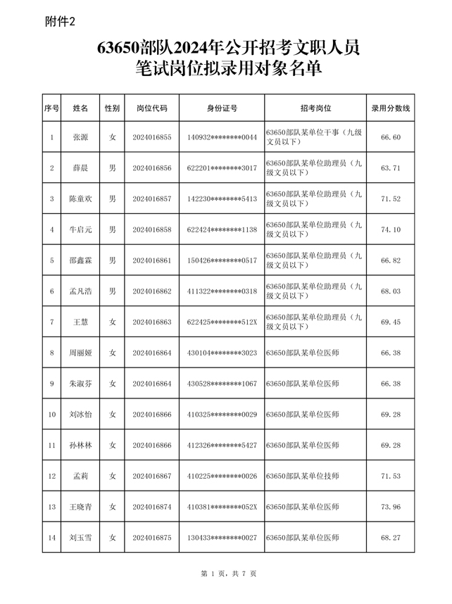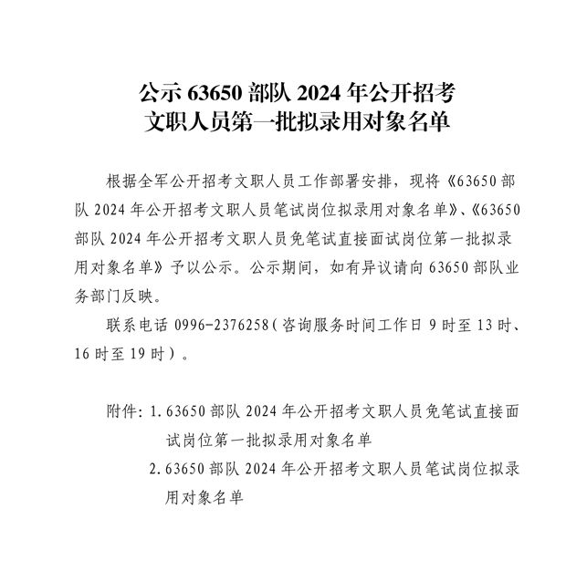 公示63650部队2024年公开招考文职人员第一批拟录用对象名单