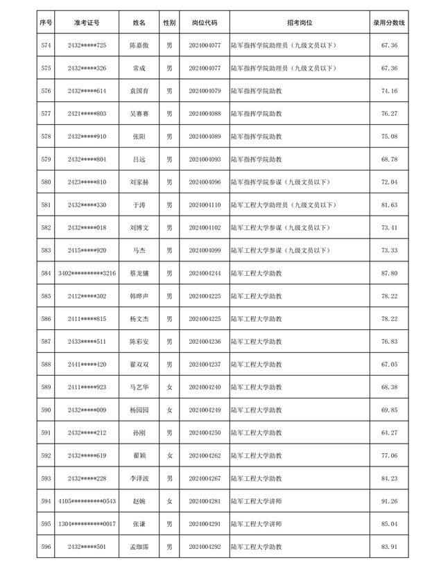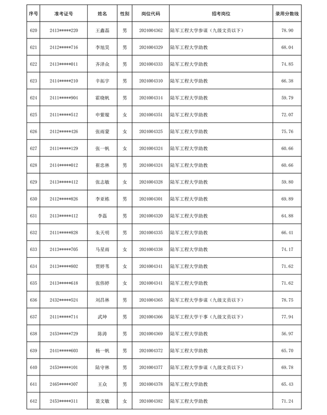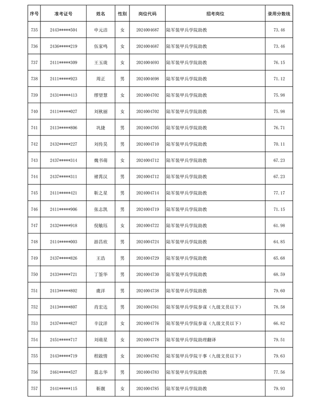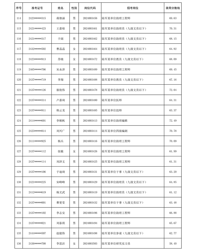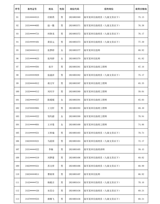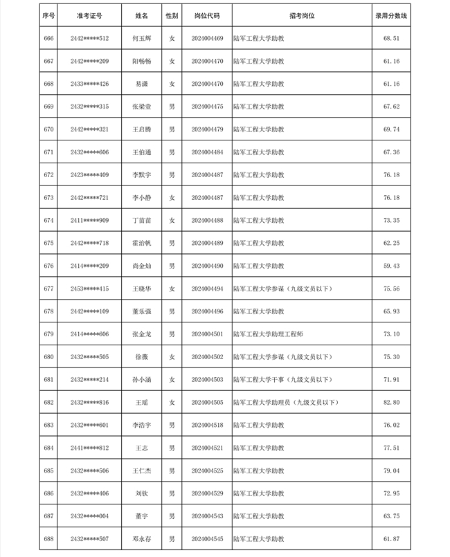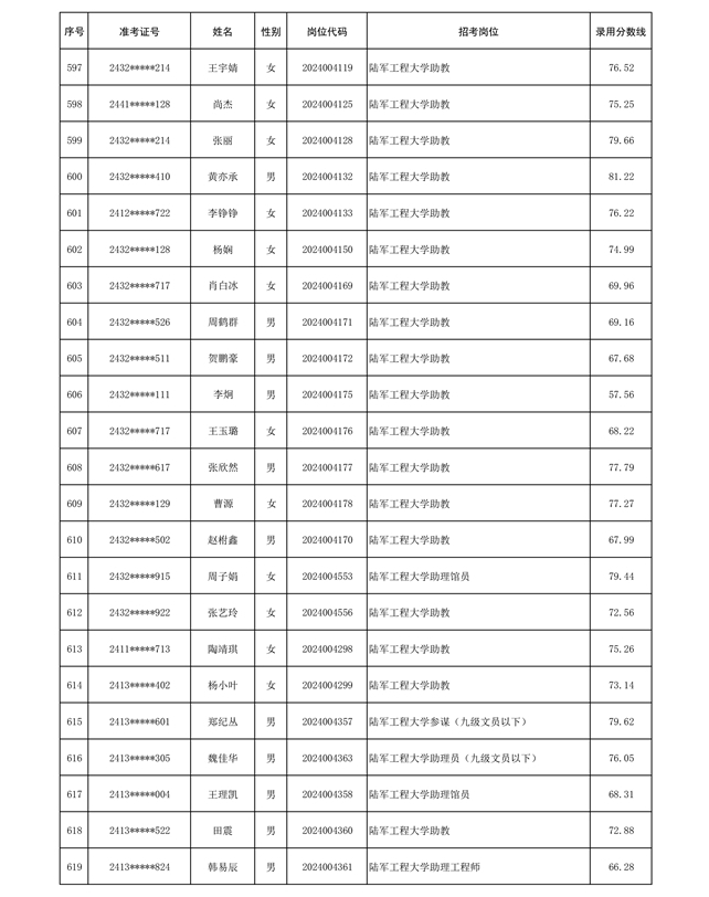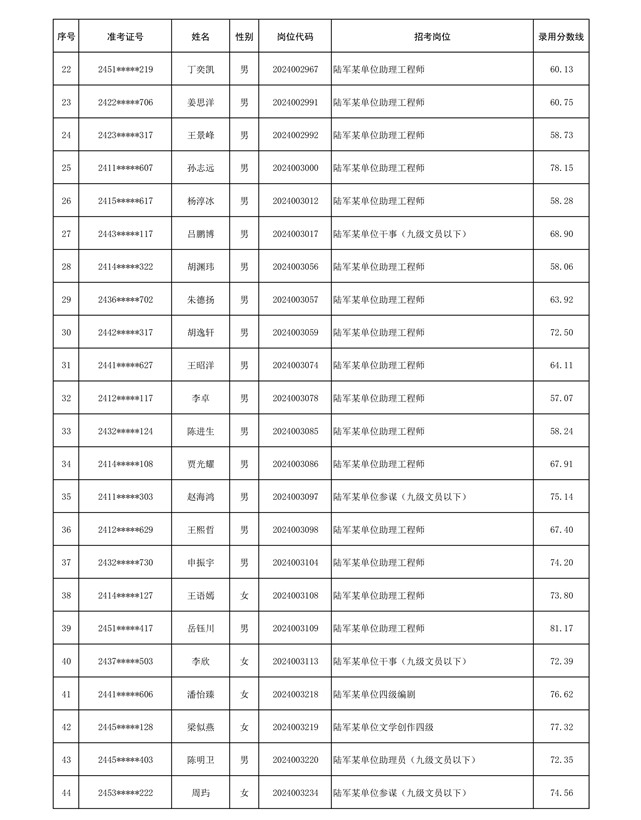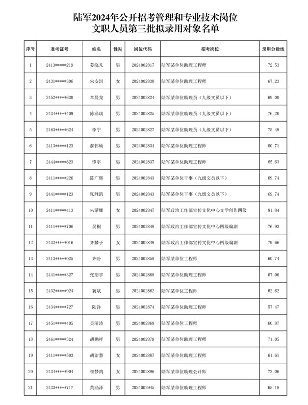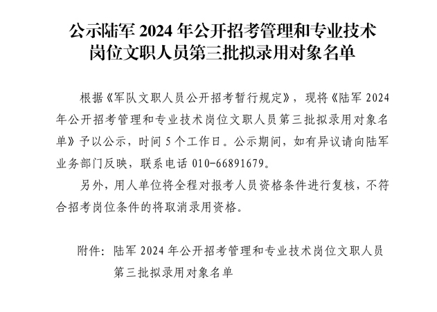 公示陆军2024年公开招考管理和专业技术岗位文职人员第三批拟录用对象名单