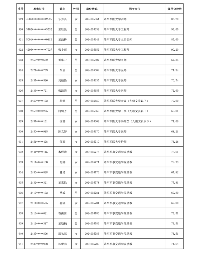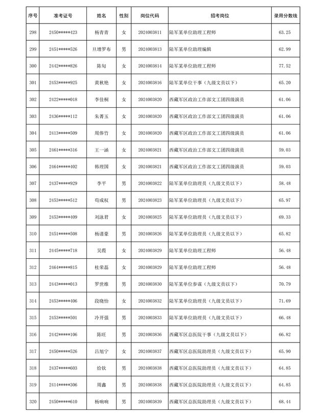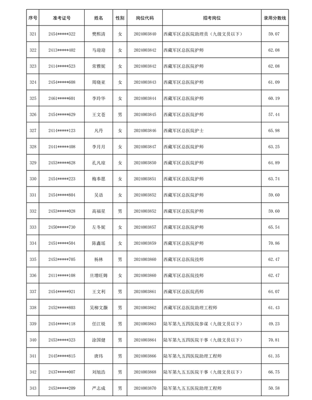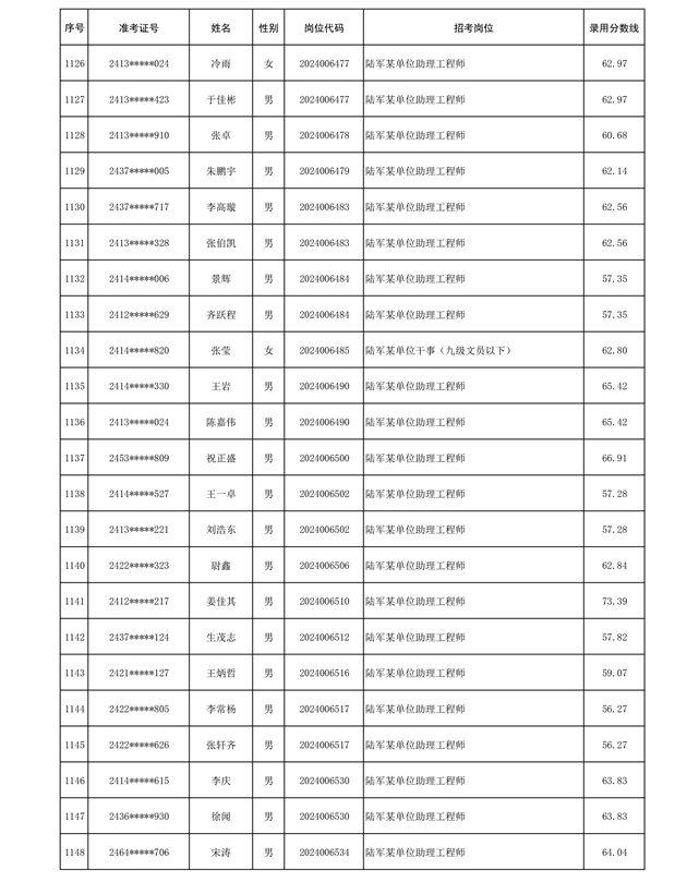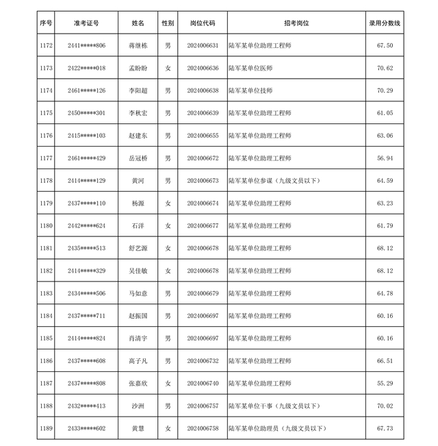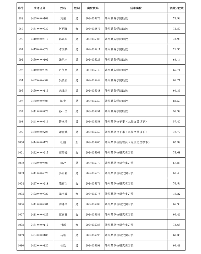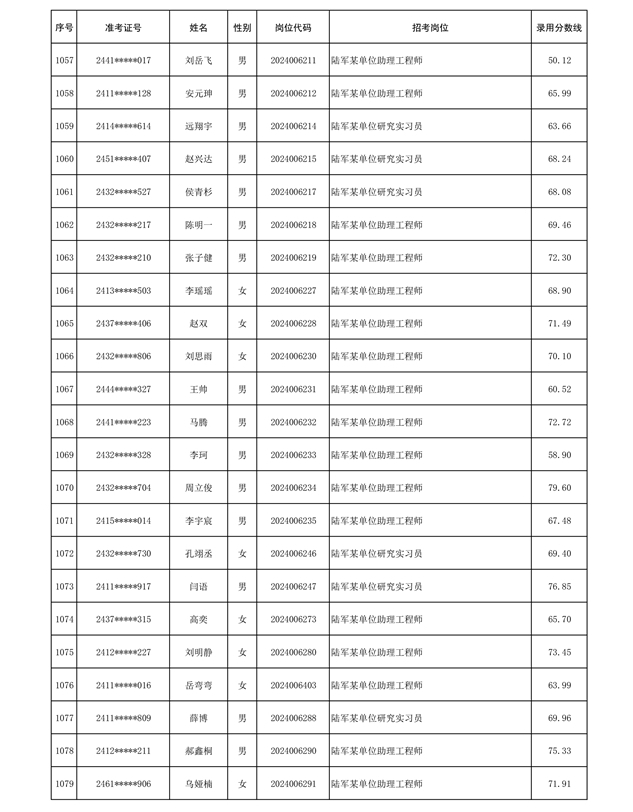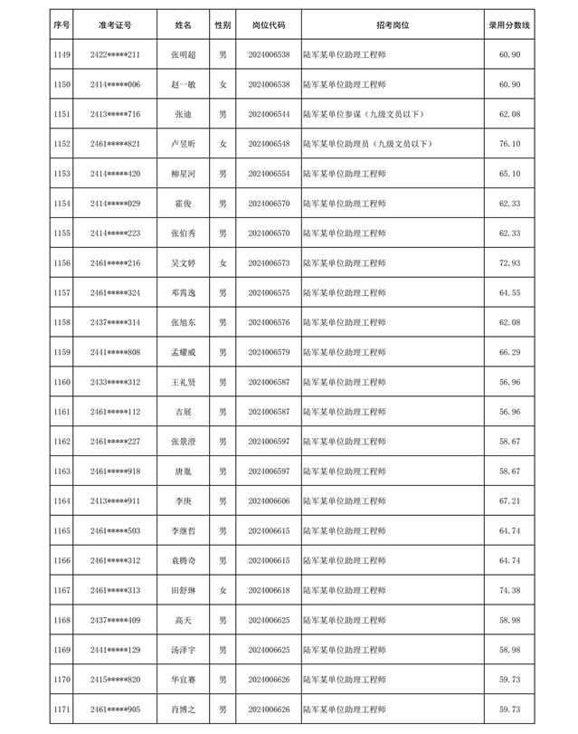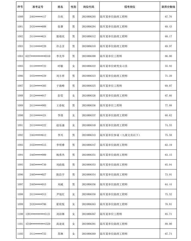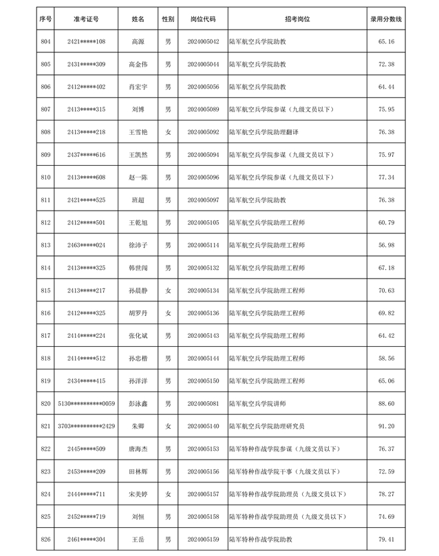 公示信息支援部队2024年公开招考 文职人员第三批拟录用对象名单