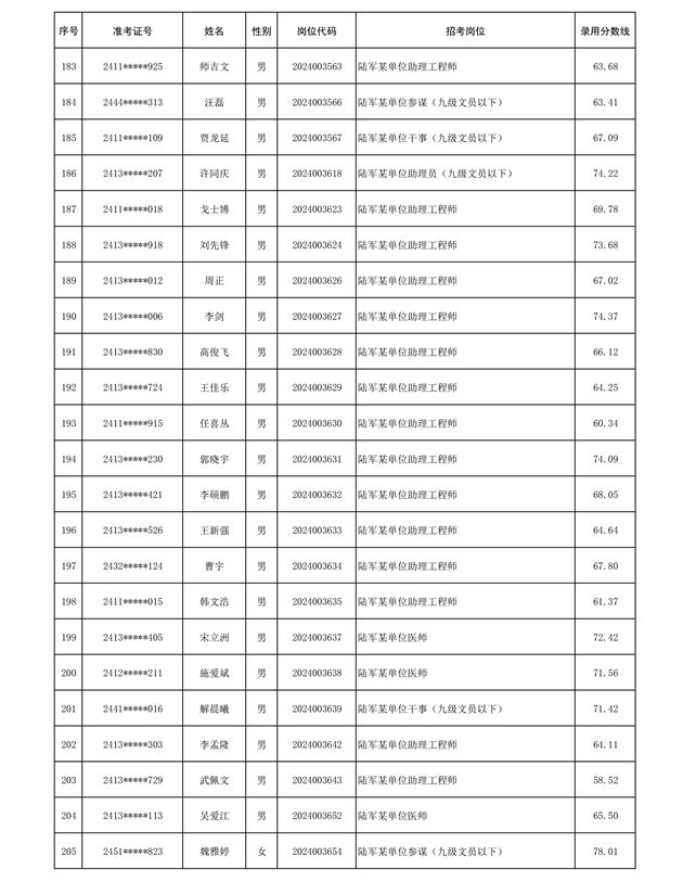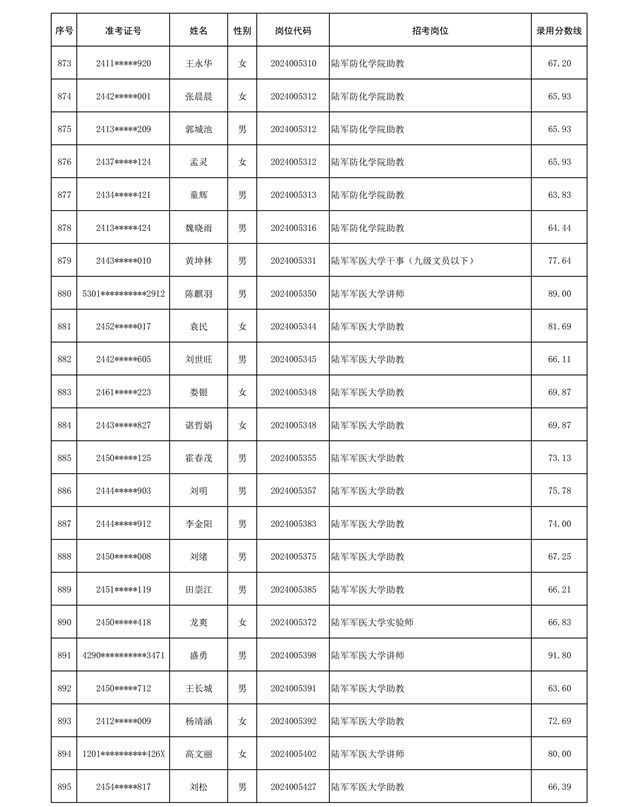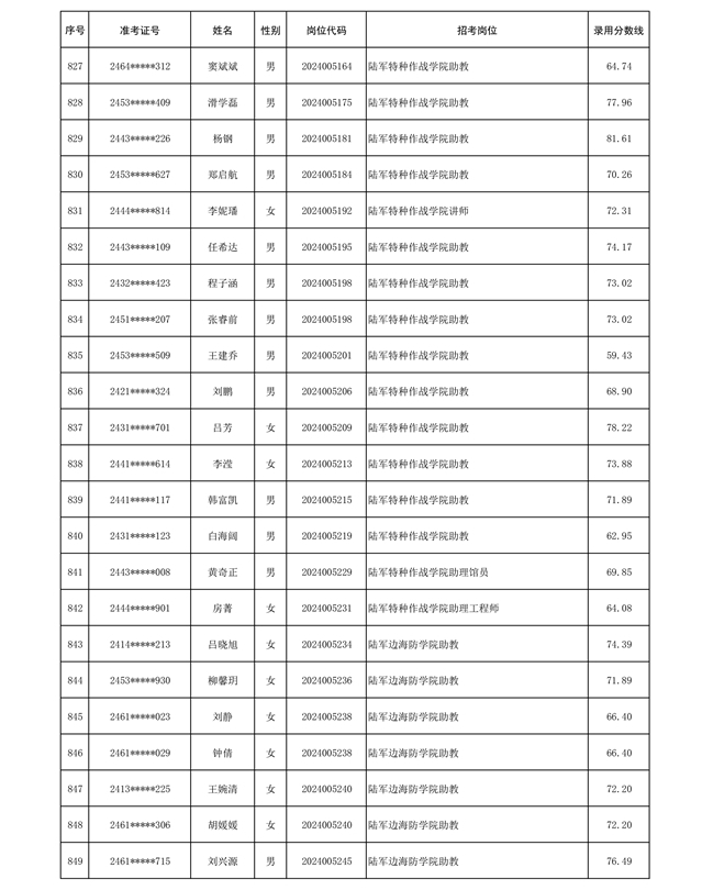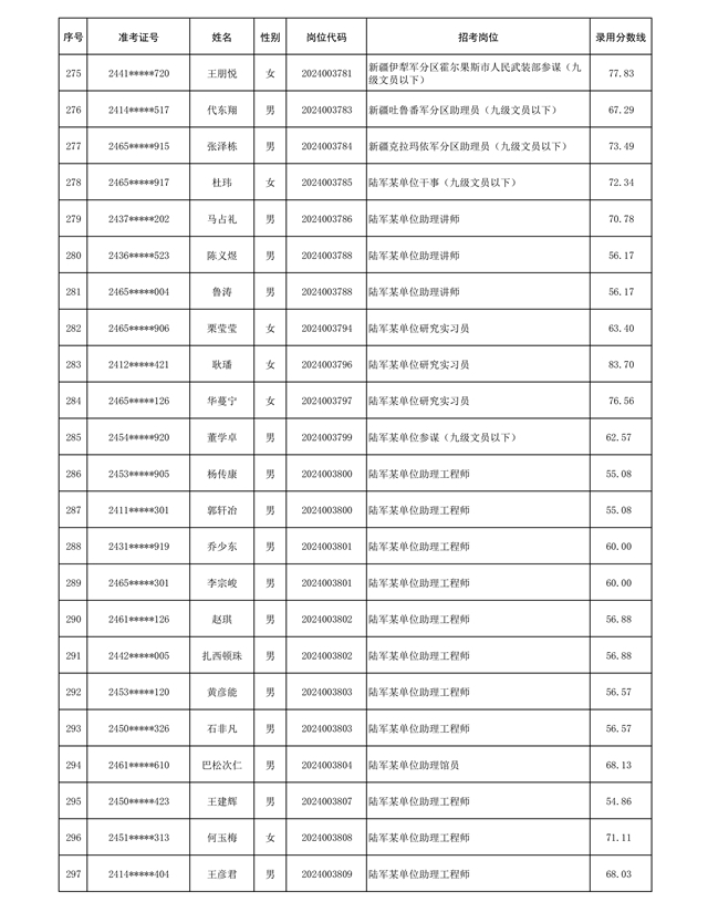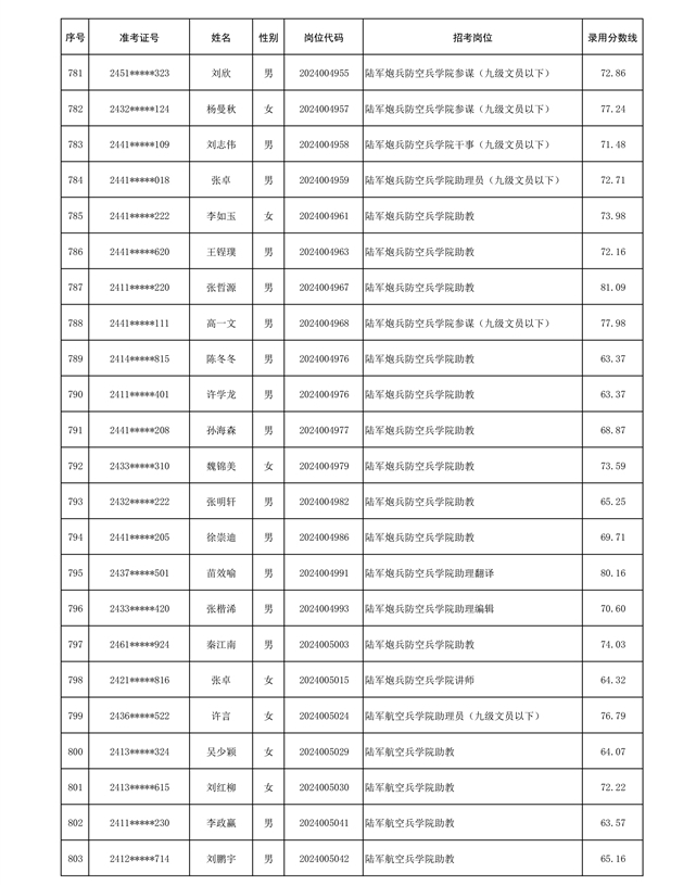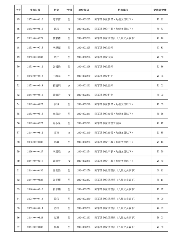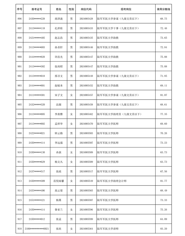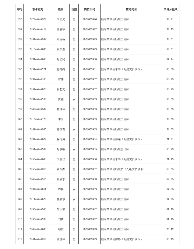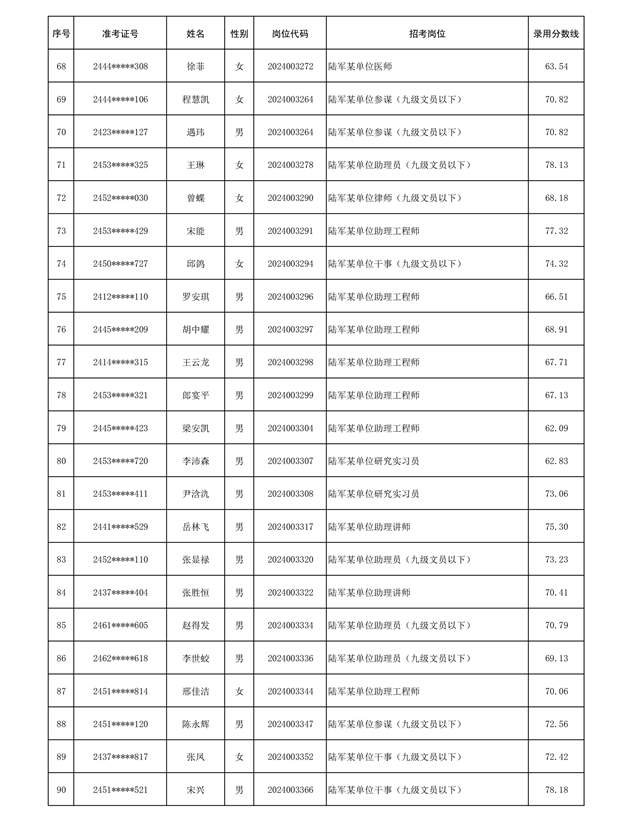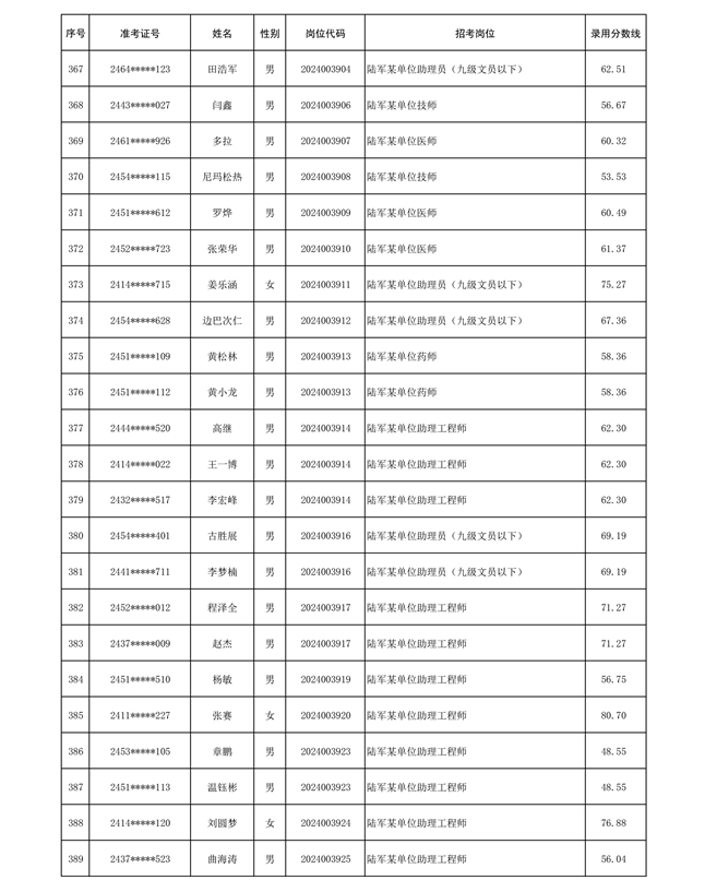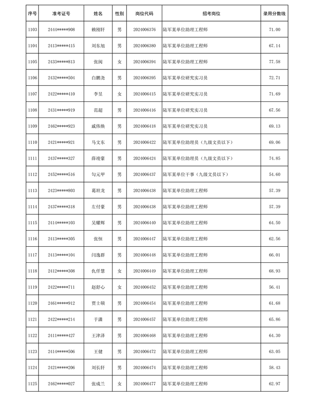 公示信息支援部队2024年公开招考 文职人员第三批拟录用对象名单
