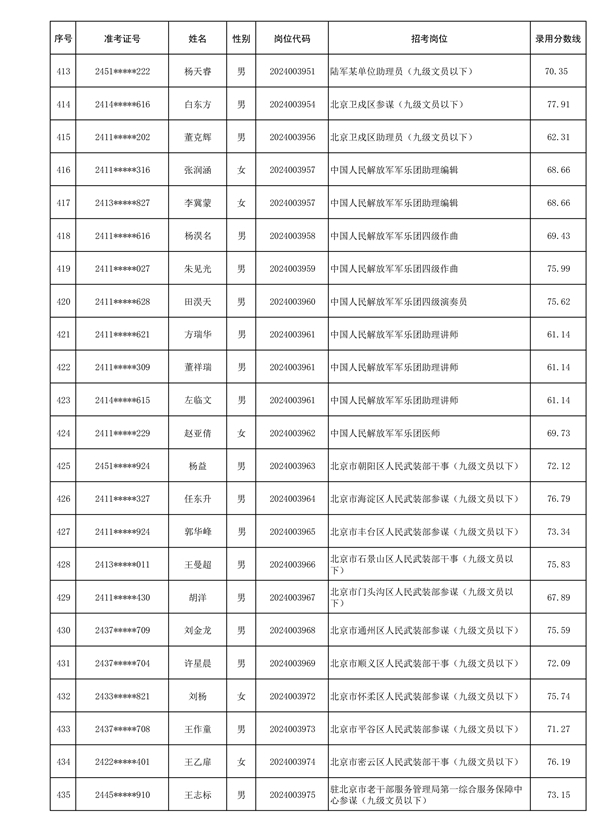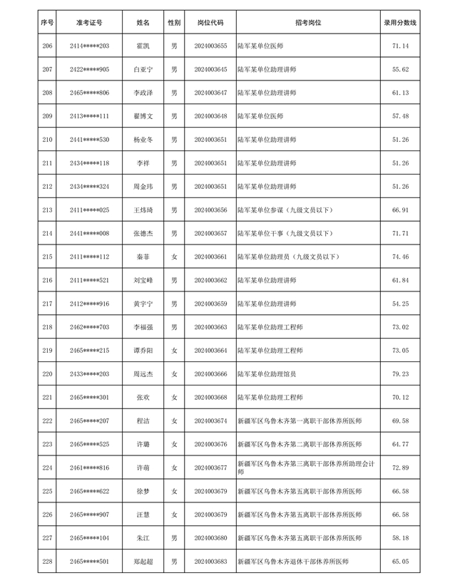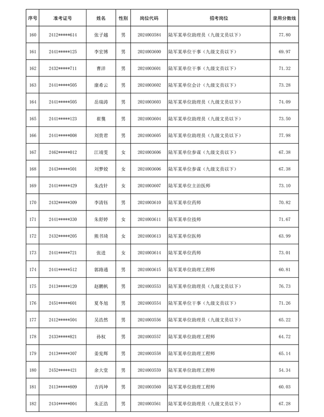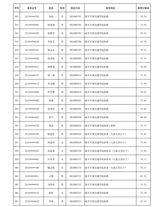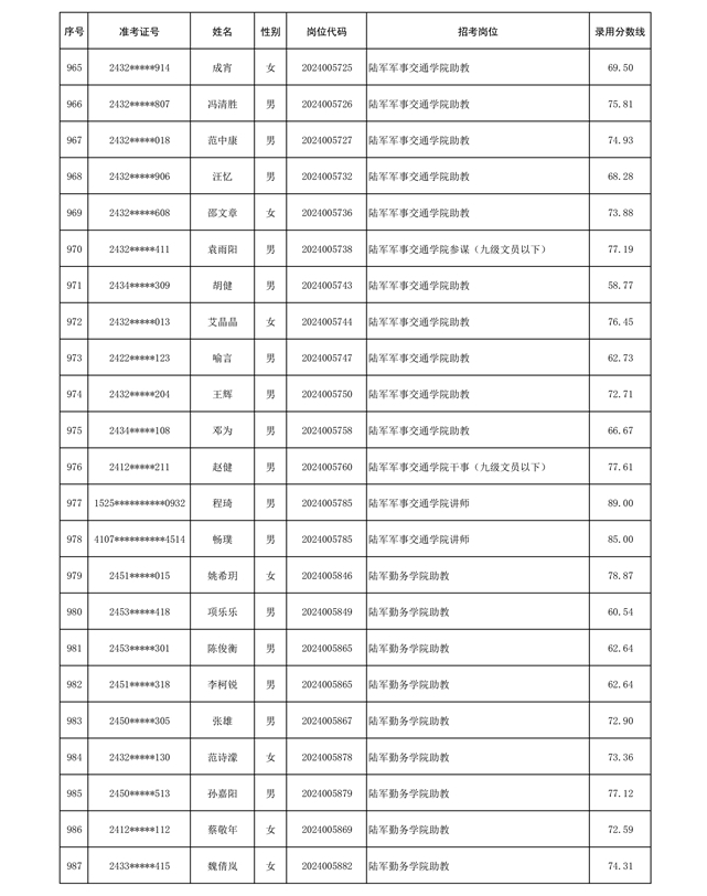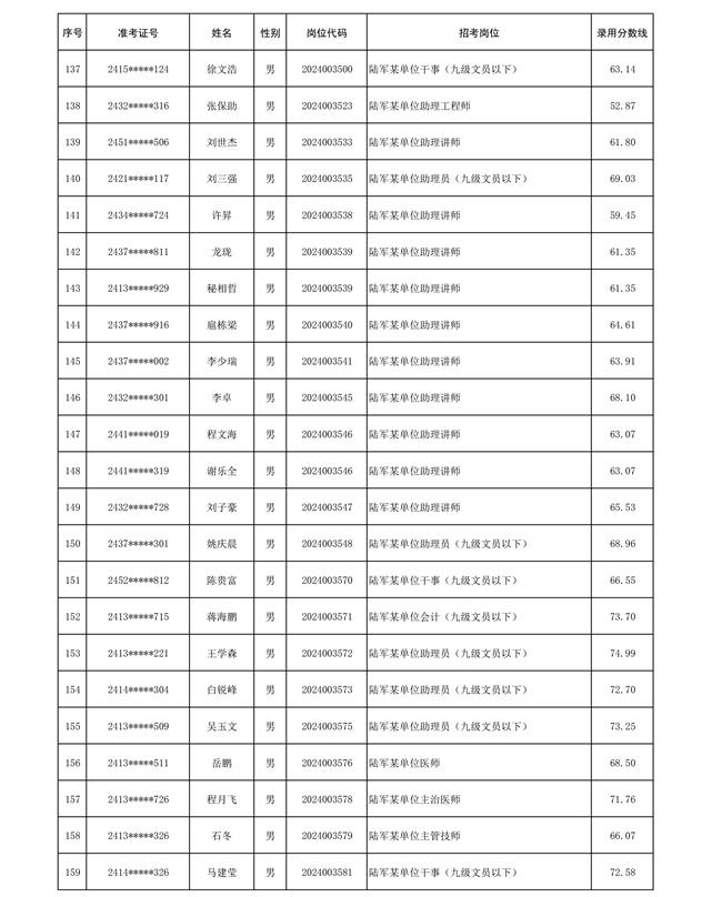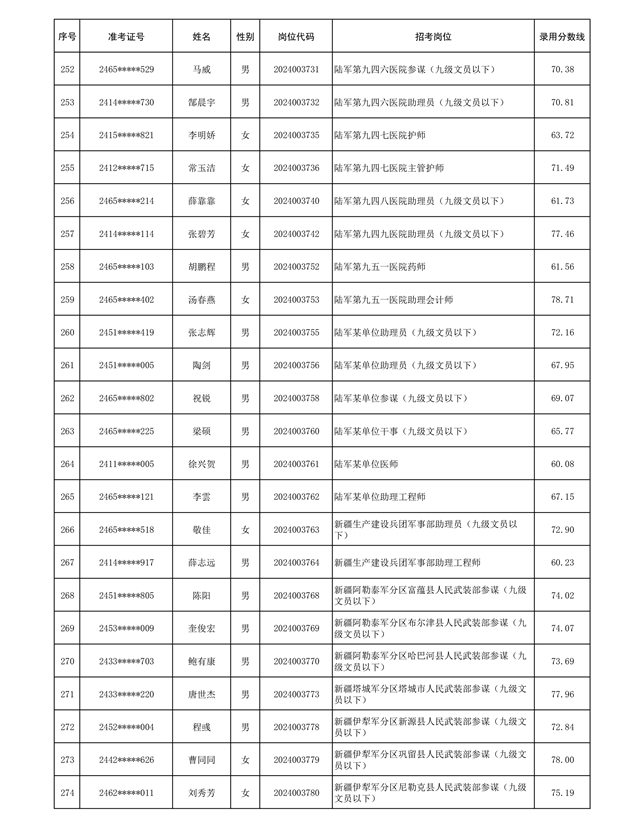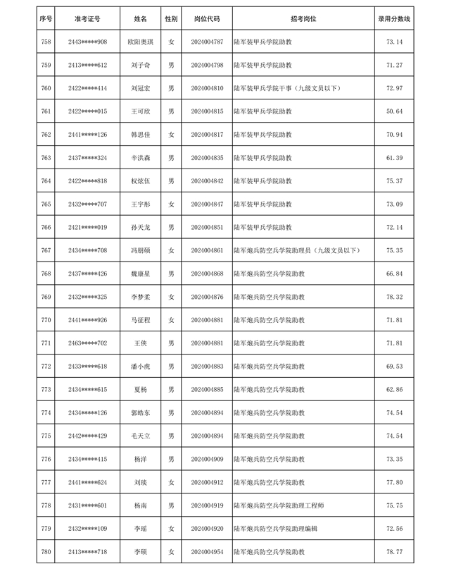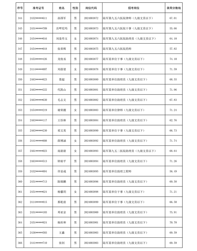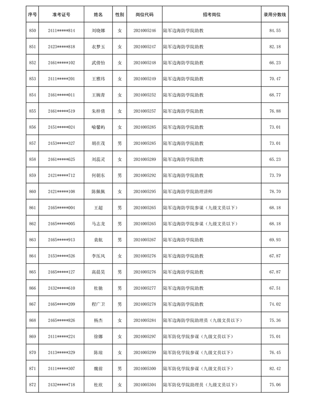 公示信息支援部队2024年公开招考 文职人员第三批拟录用对象名单