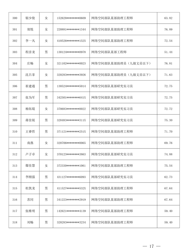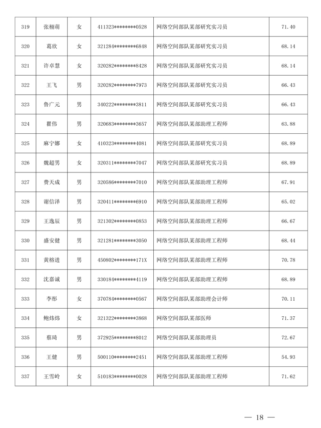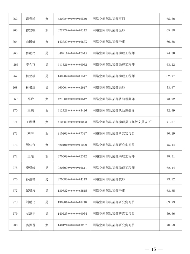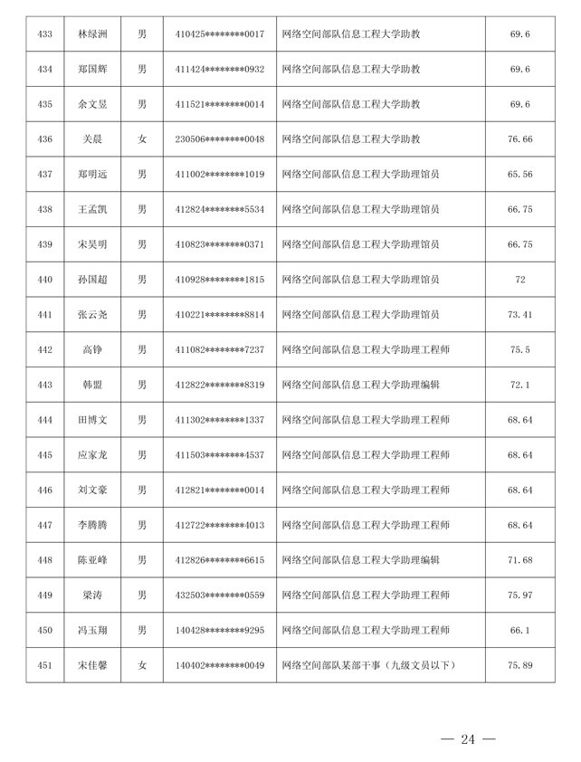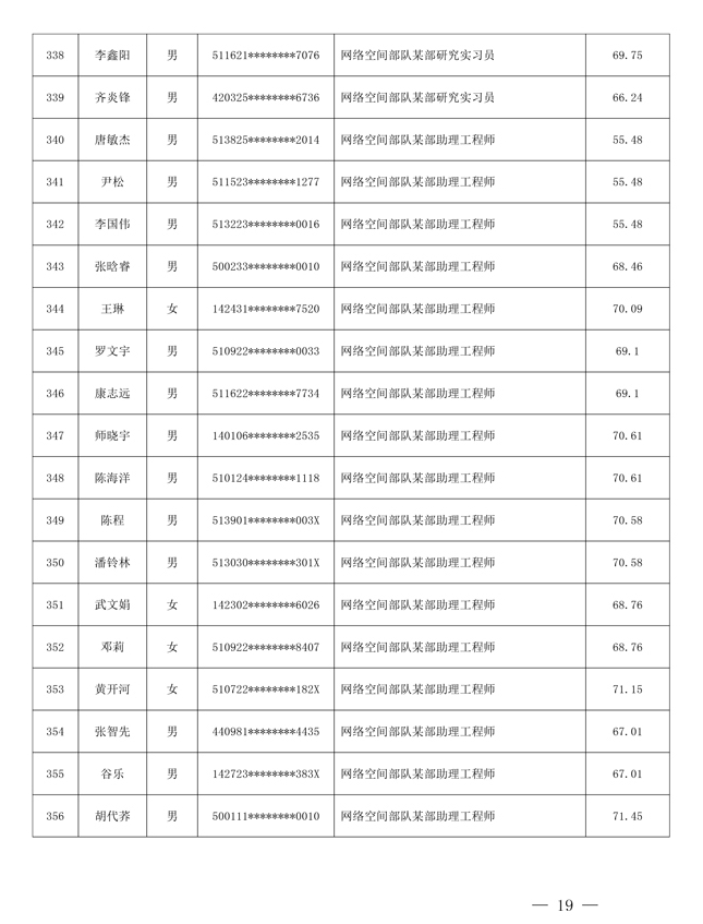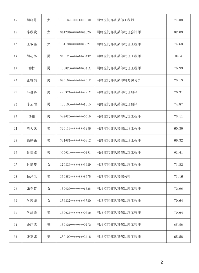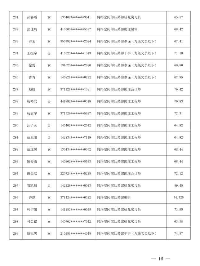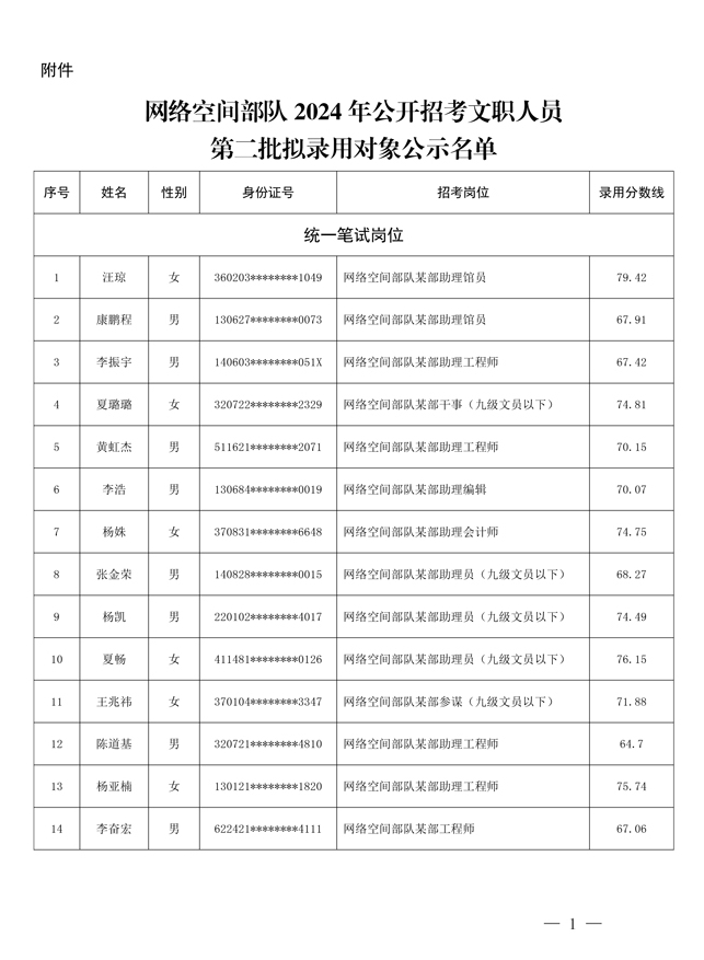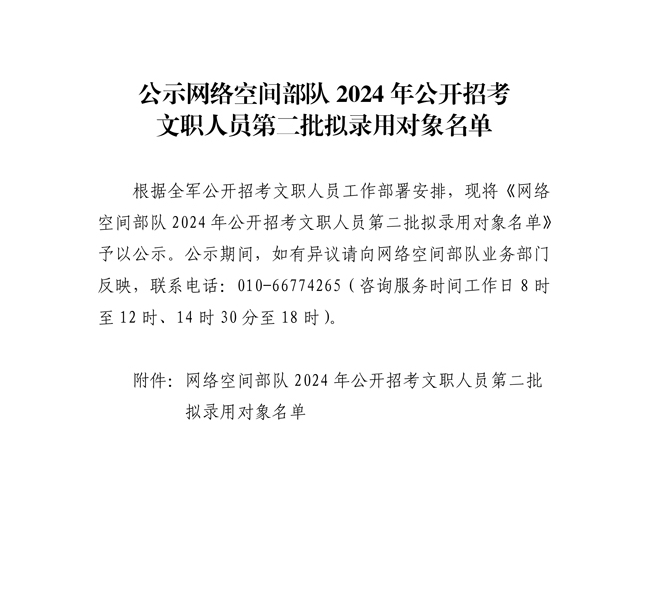 公示网络空间部队2024年公开招考文职人员第二批拟录用对象名单