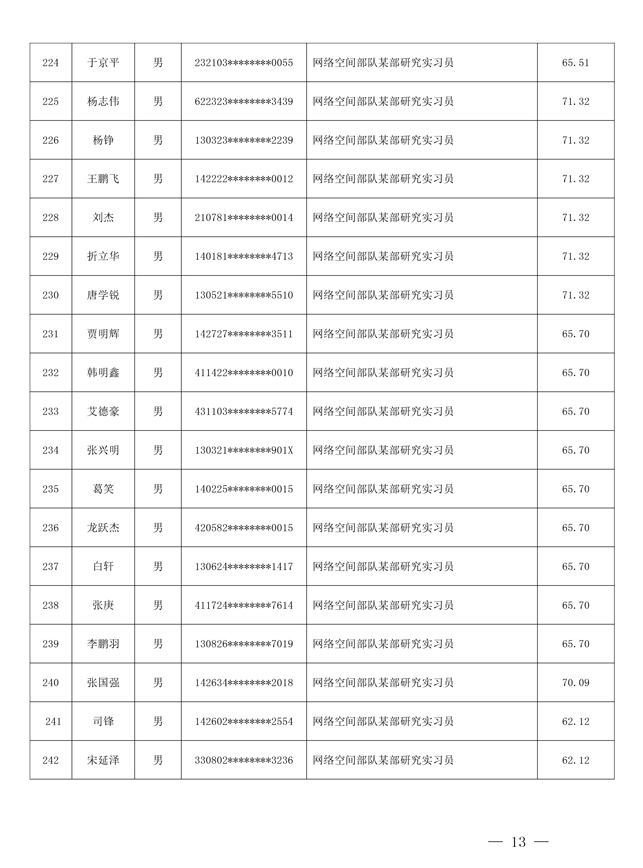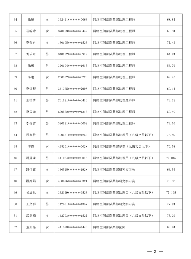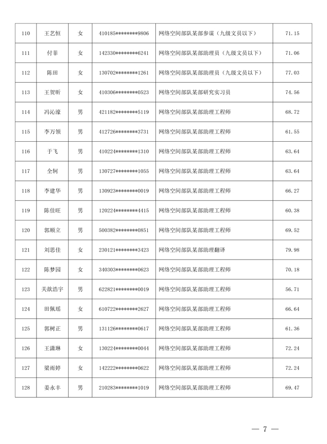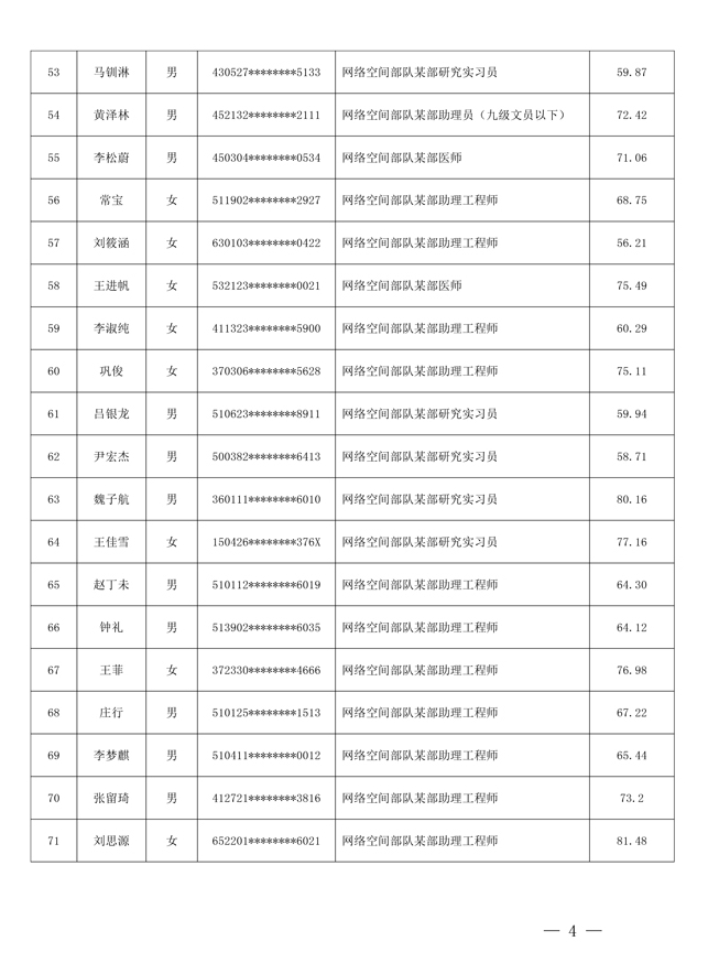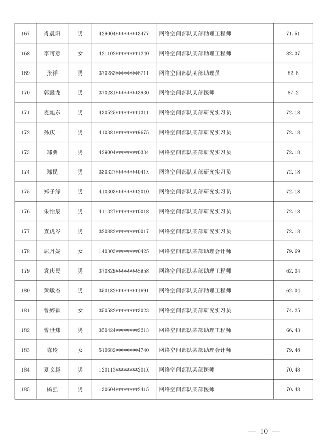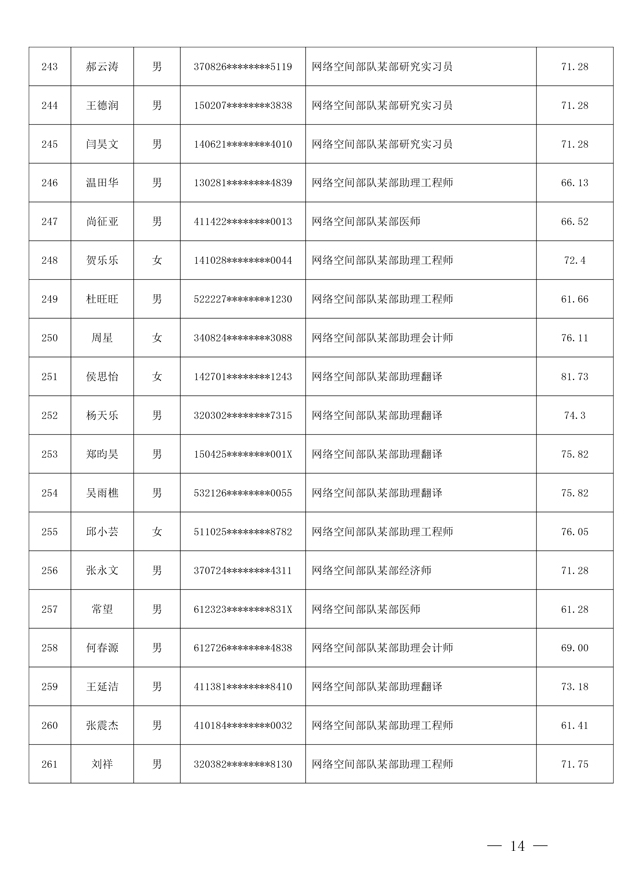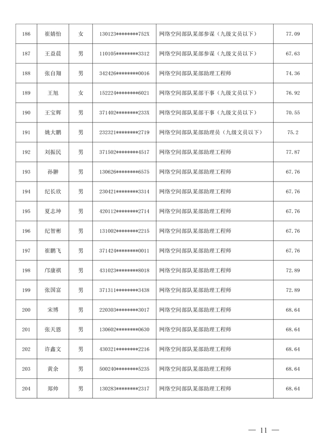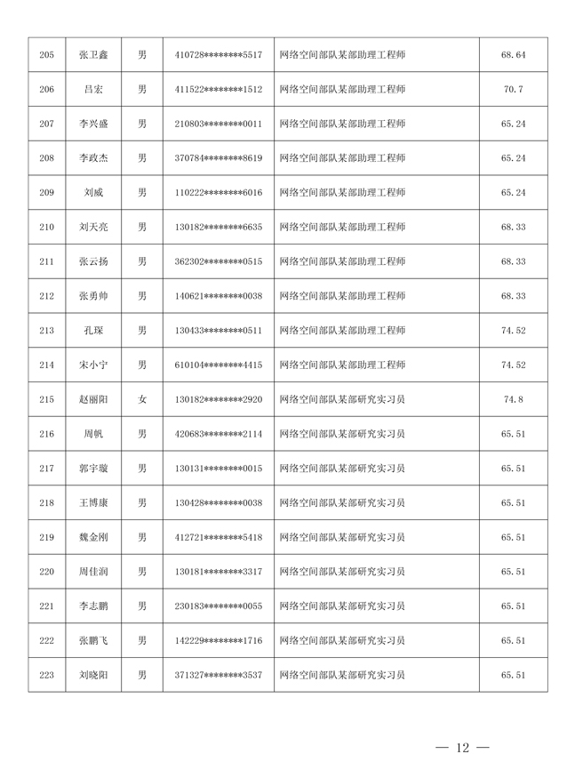 公示网络空间部队2024年公开招考文职人员第二批拟录用对象名单