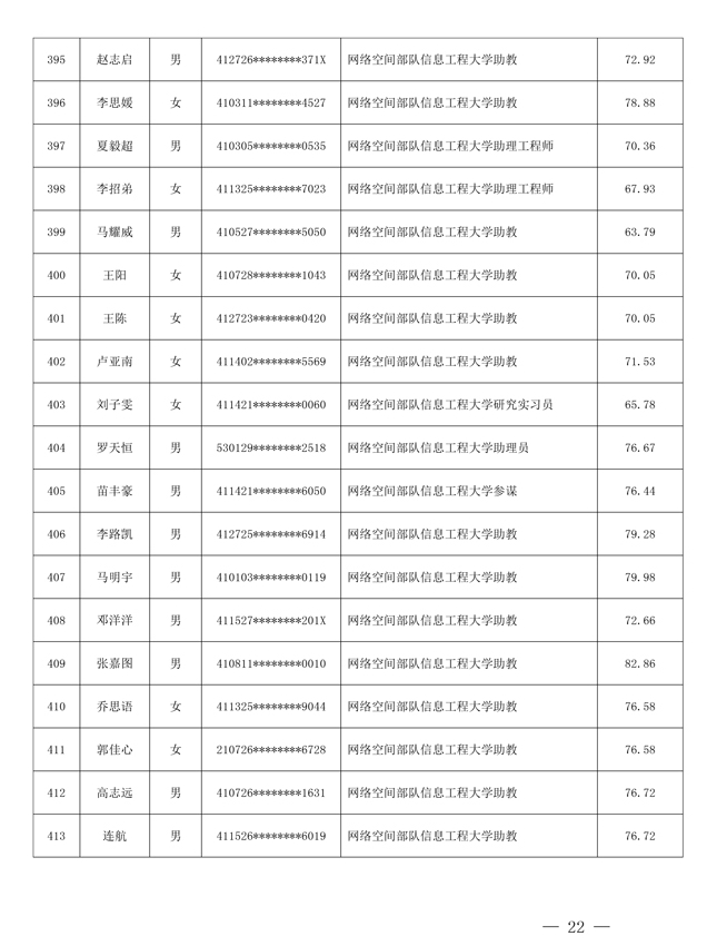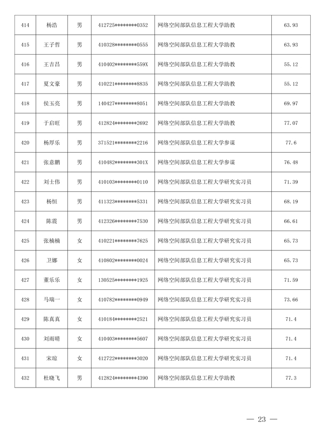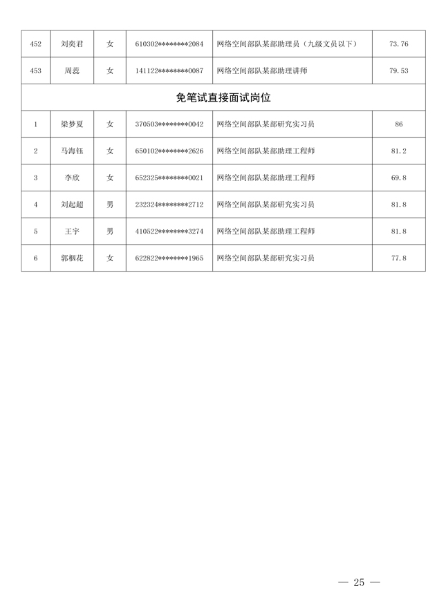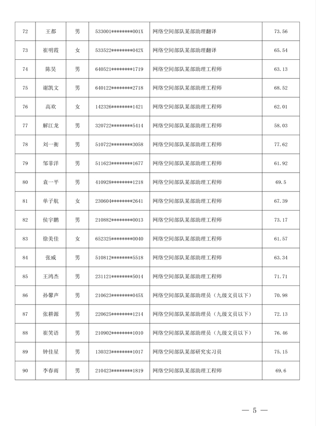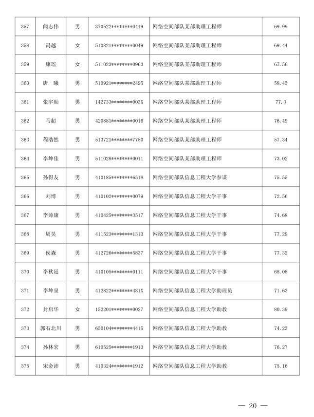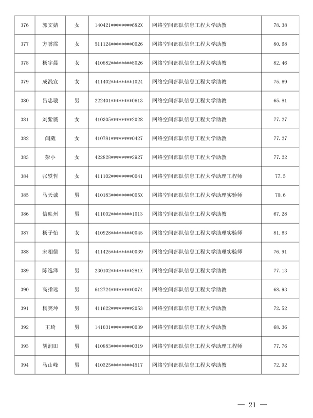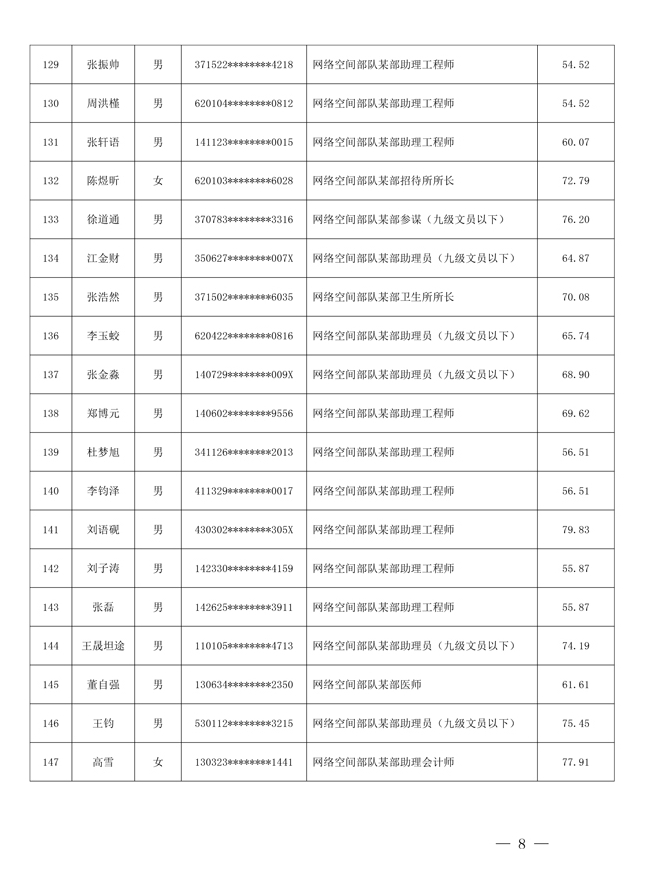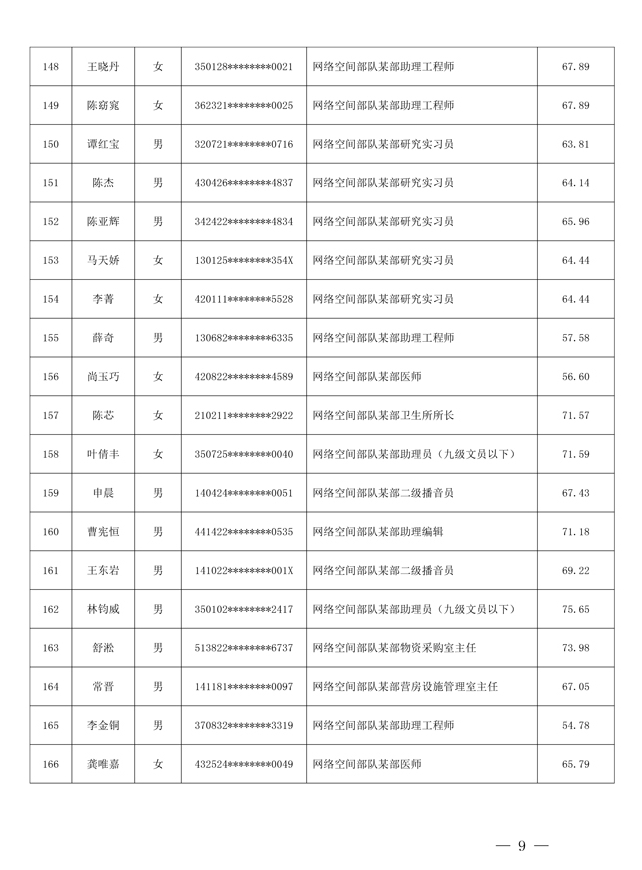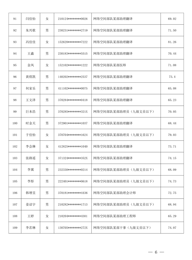 公示网络空间部队2024年公开招考文职人员第二批拟录用对象名单