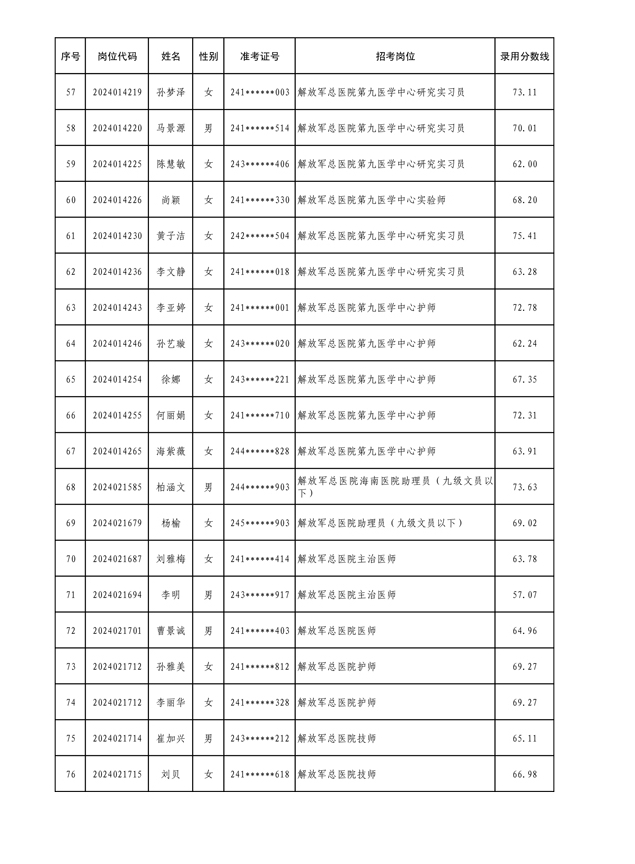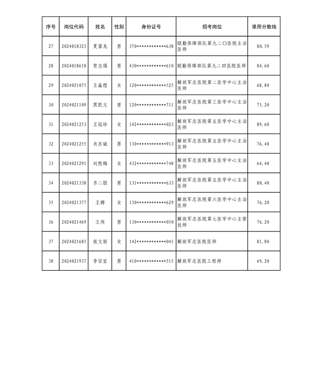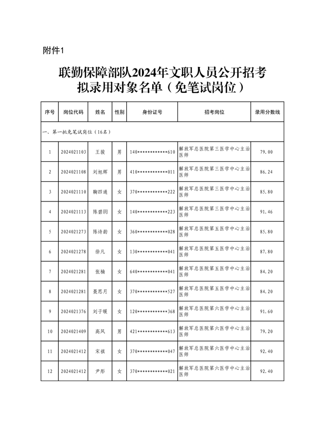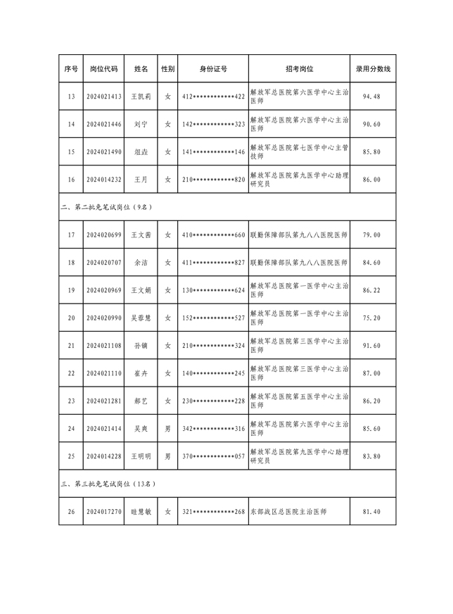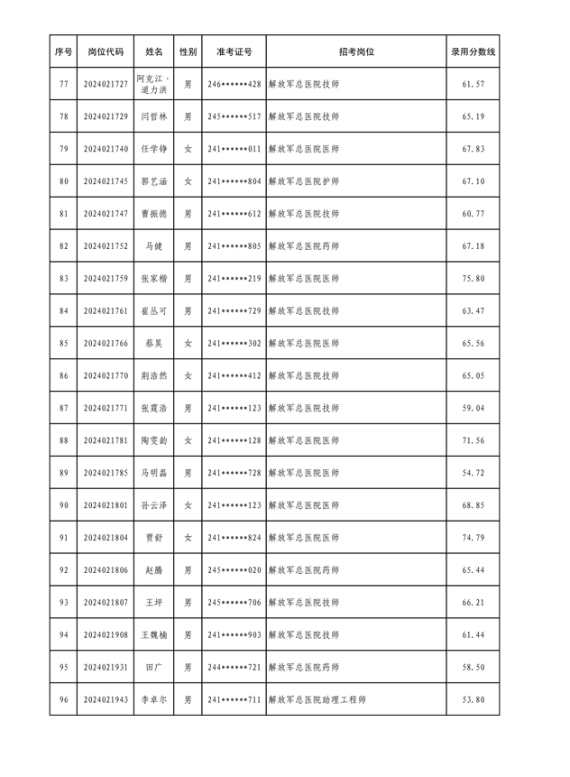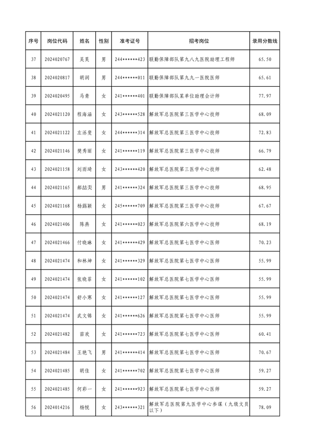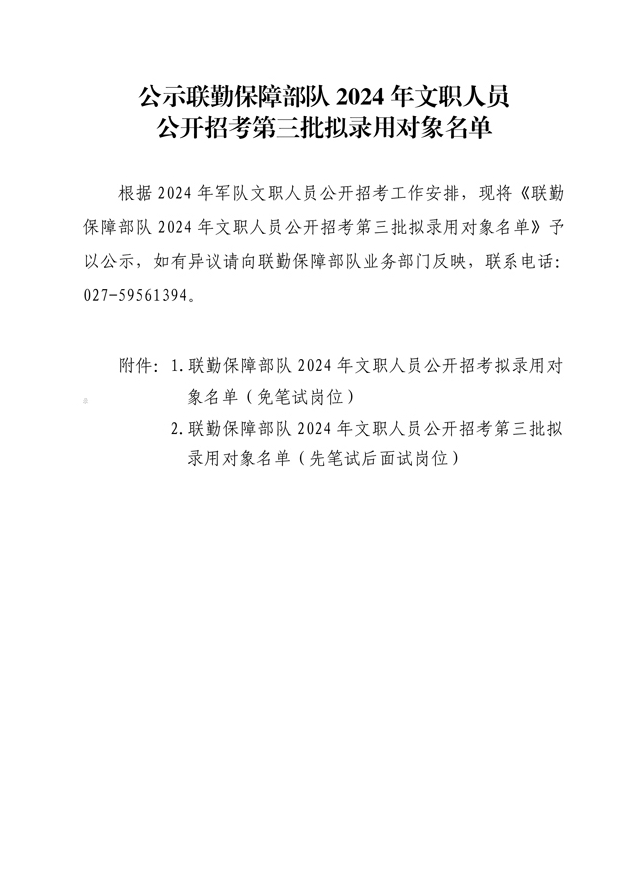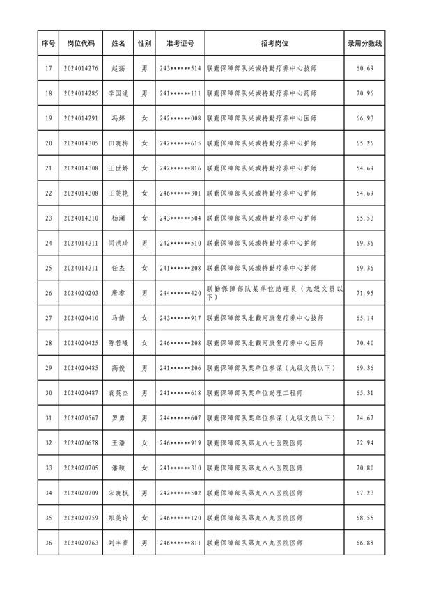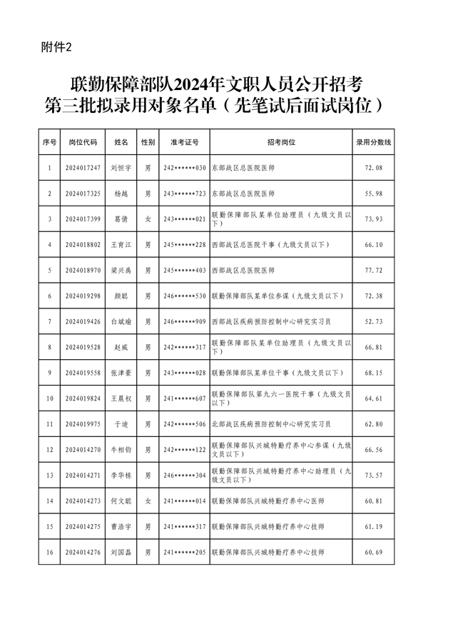 公示联勤保障部队2024年文职人员公开招考第三批拟录用对象名单