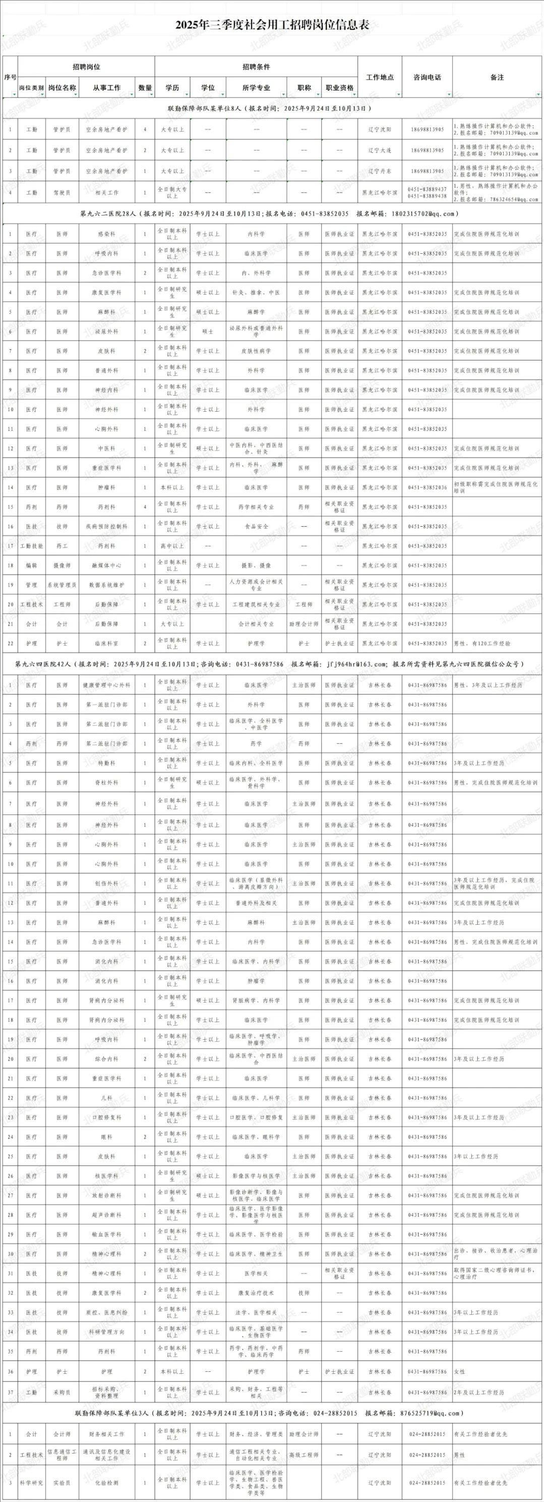 联勤保障部队北部地区2025年第三季度社会用工81人招聘计划