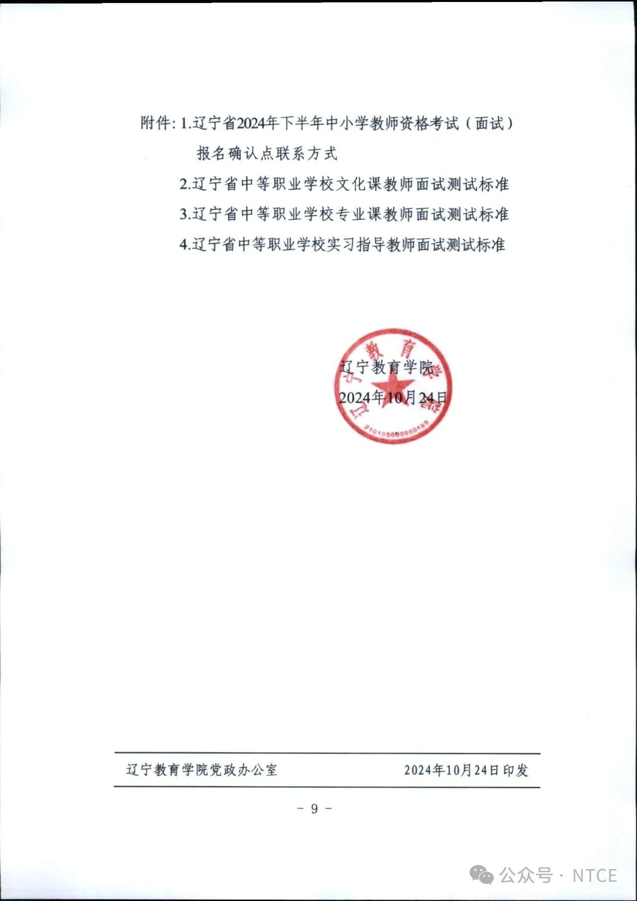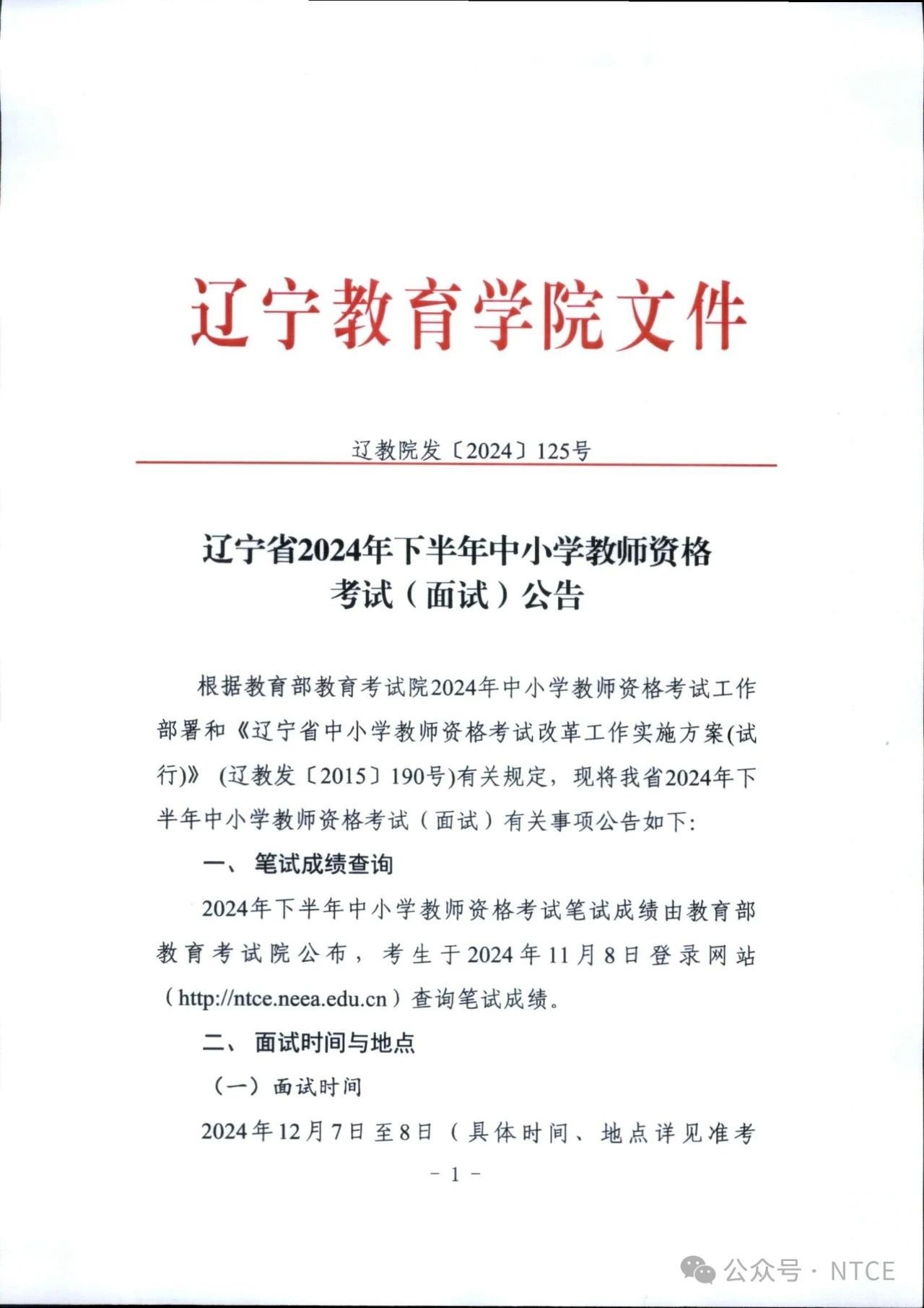 辽宁省2024年下半年中小学教师资格考试(面试)公告