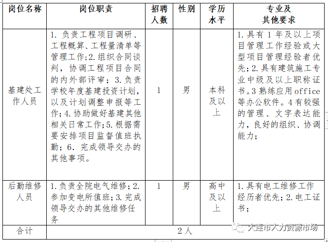 5.基建工作人员年龄不超过35周岁,本科及以上学历,具有建筑施工专业中级及以上职称证书;