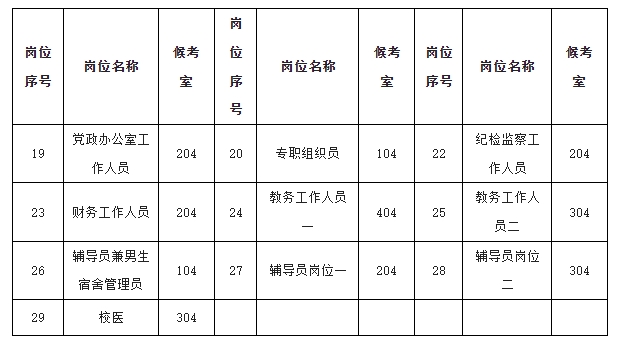 以下岗位参加面试的人员携本人身份证、准考证于7月7日早8:00到候考室,进行心理测试,8:30进行面试抽签,面试顺序由现场抽取产生。8:00仍未到达候考室的,视为自动弃权。