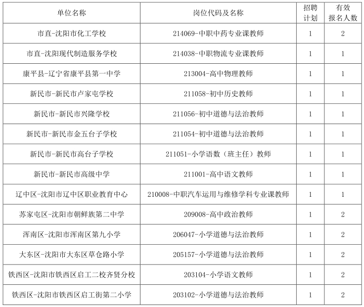 按照《2024年沈阳市教育系统公开招聘工作人员总公告》要求,专业技术教师岗位:招聘岗位有效报名人数与招聘计划达不到3:1时,新民市、法库县和康平县招聘岗位达不到2:1时,将取消或削减该岗位招聘计划。其他专业技术岗位和管理岗位:招聘岗位有效报名人数与招聘计划达不到2:1时,将取消或削减该岗位招聘计划。