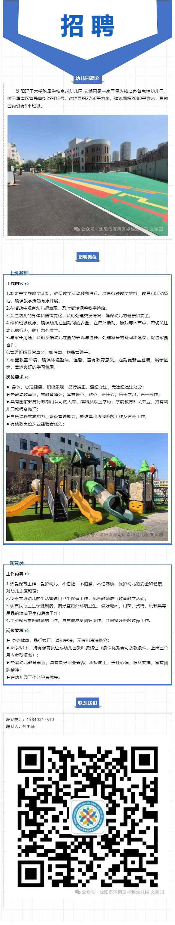 【沈理工附校·卓越】沈阳理工大学附属学校卓越幼儿园·文澜园招聘