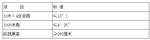 按照《关于印发<公安机关录用人民警察体能测评项目和标准(暂行)>的通知》(人社部发〔2011〕48号)执行,如果在体能测评前国家出台新的体能测评标准,则按国家有关部门最新的体能测评标准执行。具体条件如下: