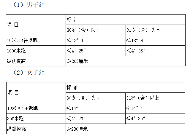 按照《关于印发公安机关录用人民警察体能测评项目和标准(暂行)的通知》(人社部发〔2011〕48号)执行。具体条件如下:
