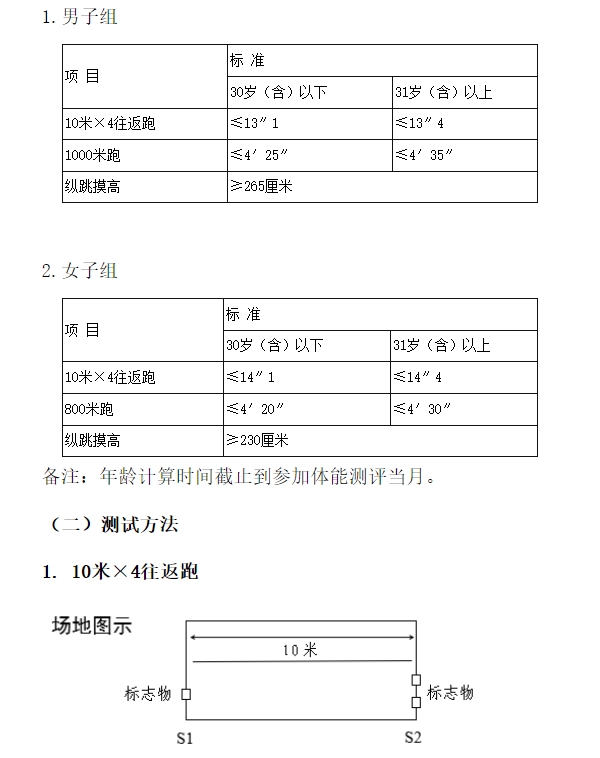 注:体能测评中有可能发生意外,请考生参加体能测评前务必对自身身体条件进行评估,如需参保人身意外险,请自行安排,测试过程中出现问题自行负责。