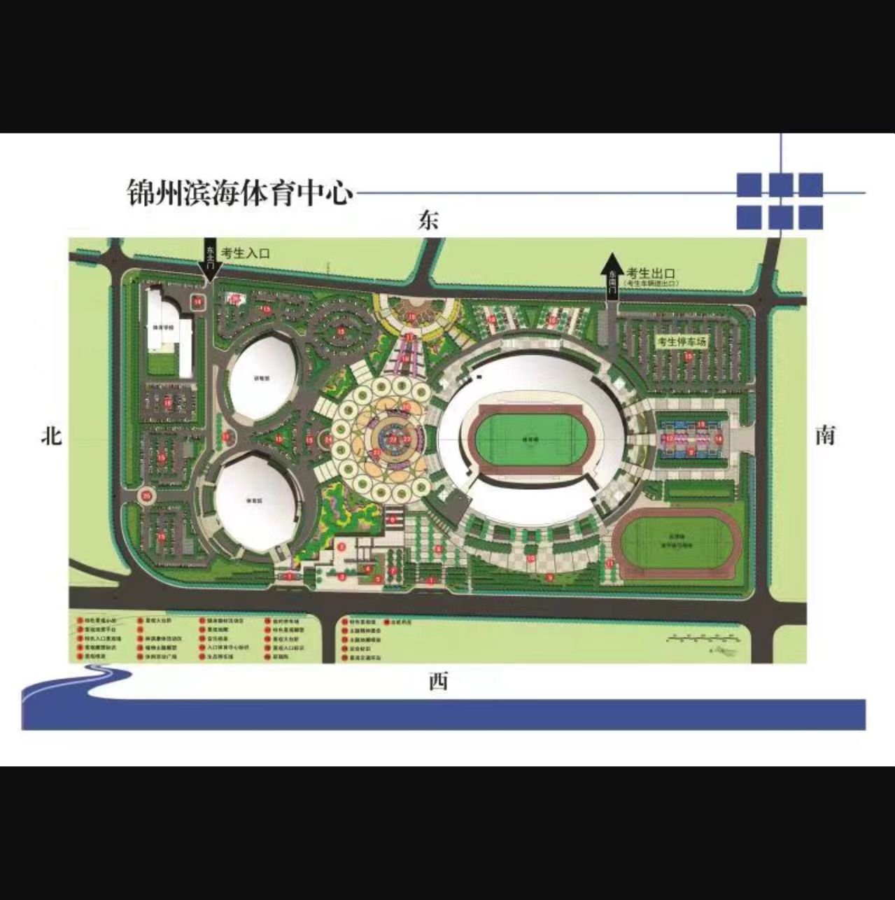 锦州滨海体育中心(锦州市太和区渤海大街六段6号)。交通方式:从锦州火车站乘坐虎跃到崔庄子站下车,或从锦州南站乘702路公交车到龙脉海景站下车。考生从体育中心东侧北门入场;东南门设有考生车辆停车场(见附件2示意图)。
