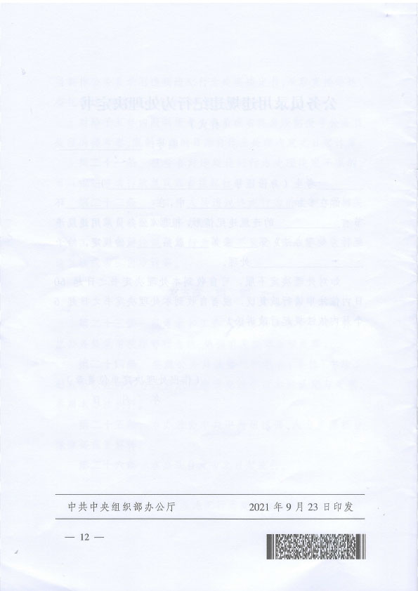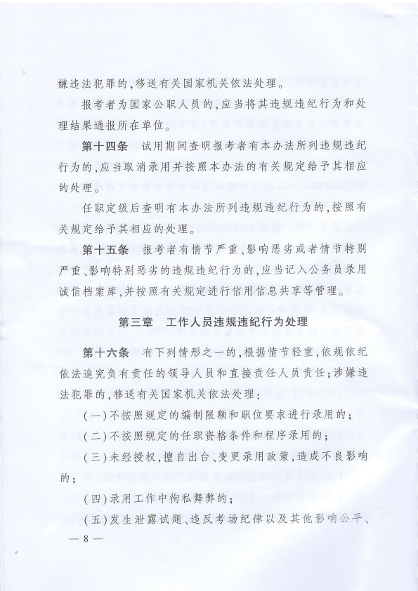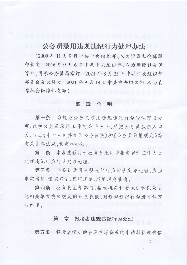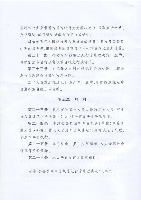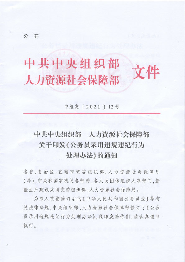 中共中央组织部人力资源社会保障部关于印发《公务员录用违规违纪行为处理办法》的通知
