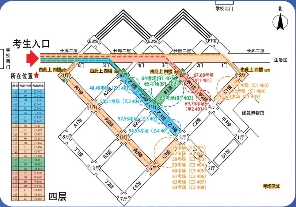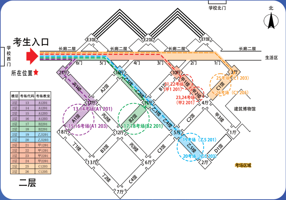 应聘人员应于考前到考点学校熟悉考点位置和交通路线。社会车辆禁止进入考点,为避免遇到道路拥堵和雨、雪等极端天气,请应聘人员合理选择公共交通工具,提前出行,建议提前60分钟到达考点。