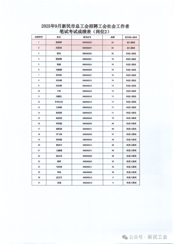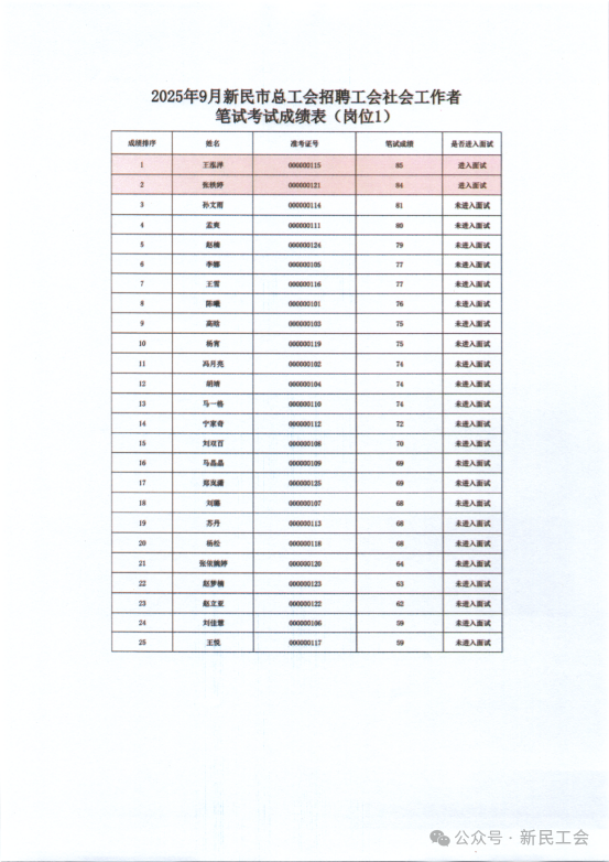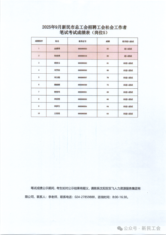 2025年沈阳市沈北新区总工会公开招录工会社会工作者 笔试成绩公示及资格审查通知