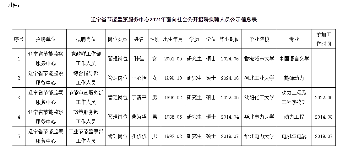 附件:辽宁省节能监察服务中心2024年面向社会公开招聘拟聘人员公示信息表