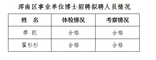 以上人员体检、考察合格予以公示,公示时间为7个工作日。公示期间对拟聘人员如有不同意见,请与沈阳市浑南区人力资源和社会保障局联系。