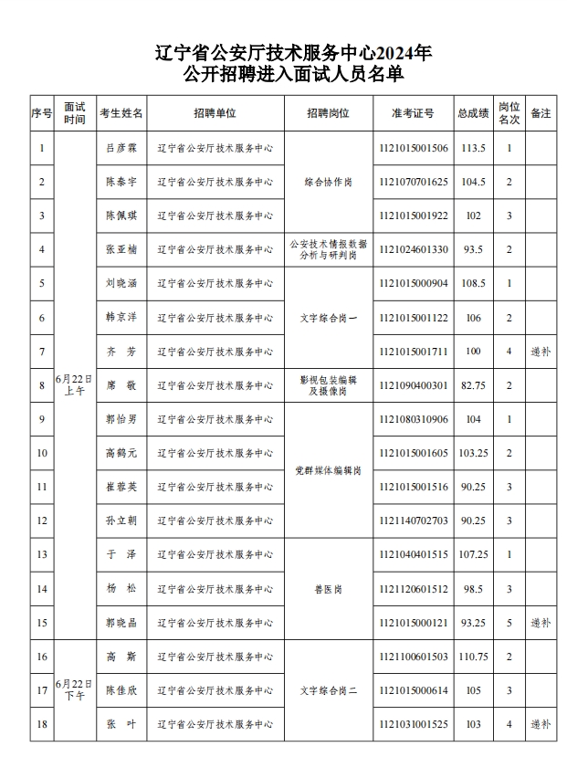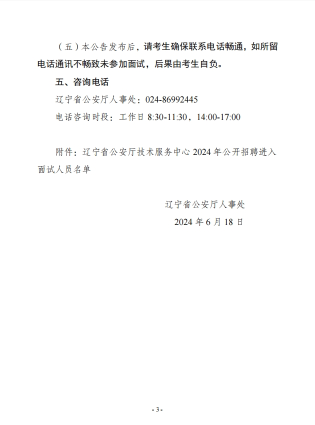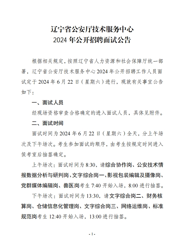 辽宁省公安厅技术服务中心2024年公开招聘面试公告