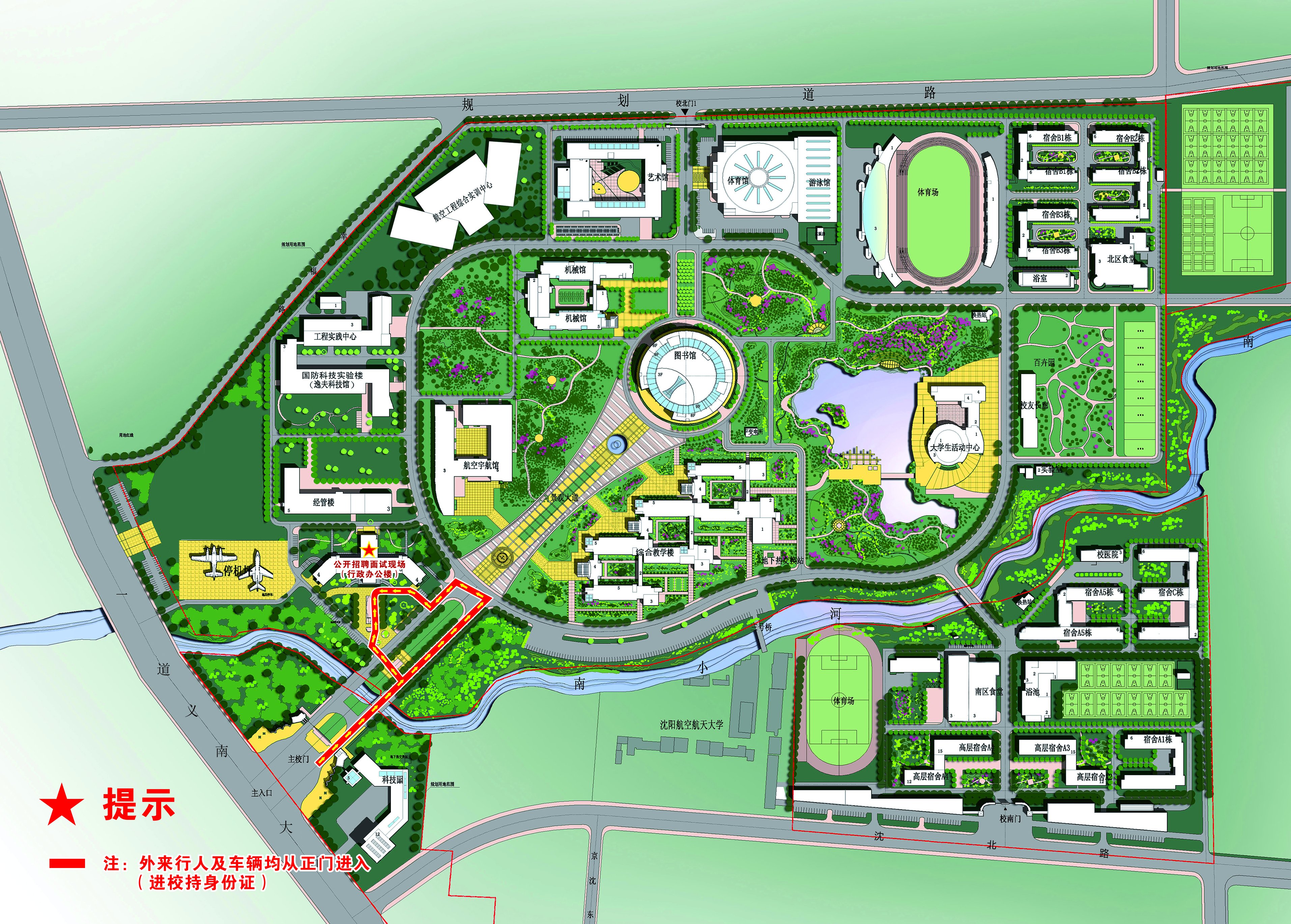 9.面试当天考生从沈阳航空航天大学正门(西门)核验身份证后进校,外来车辆进校请按序停放。因校园较大,请考生提前规划好时间。