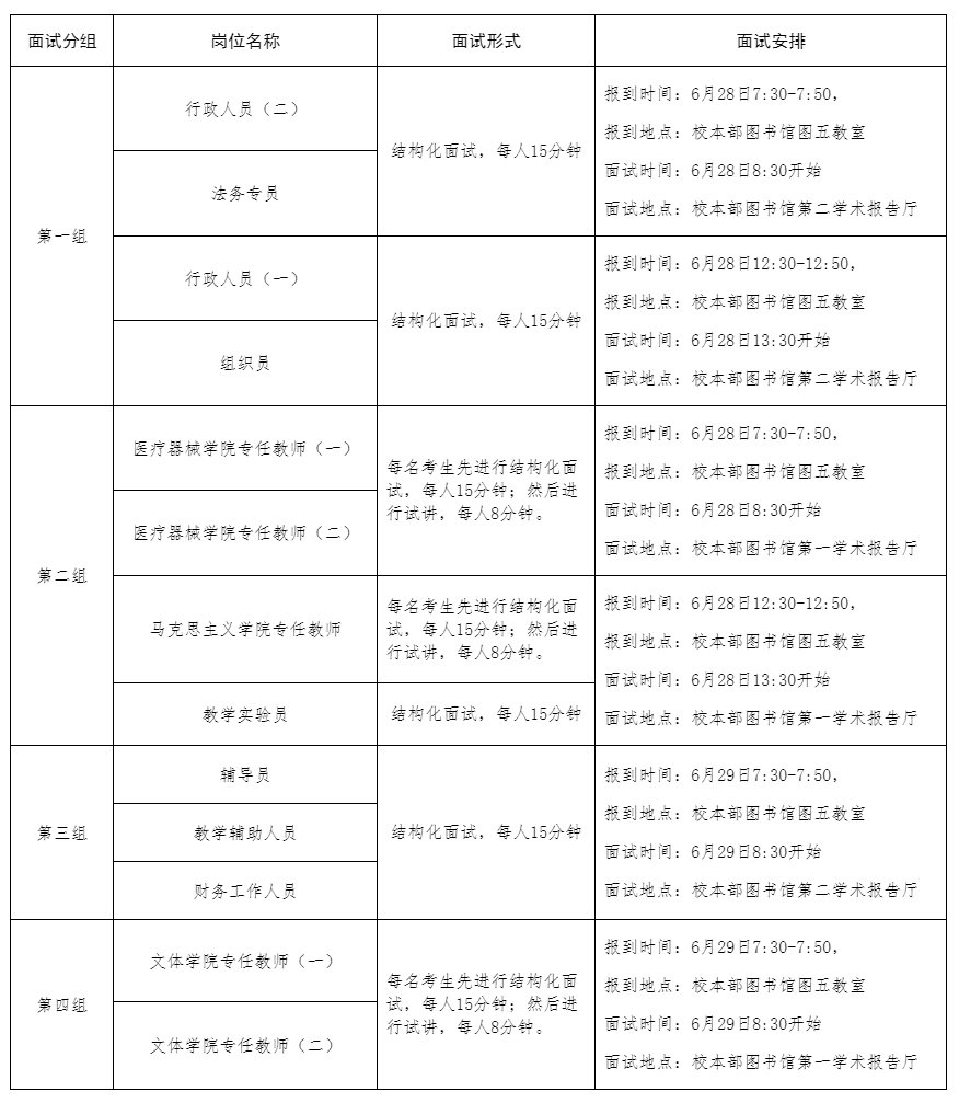 注:各组在同一上午或下午的不同岗位的面试顺序,将由现场抽签确定。