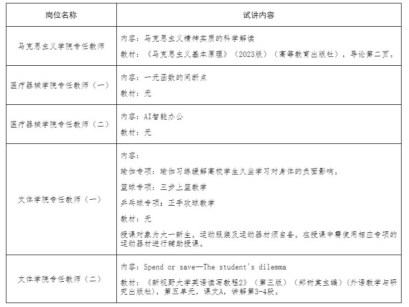专任教师岗位除结构化面试外,还需进行试讲,试讲过程中需板书授课,不使用PPT,不提供多媒体设备。每位考生的试讲时间不得超过8分钟,试讲结束前1分钟将进行提醒。试讲内容如下: