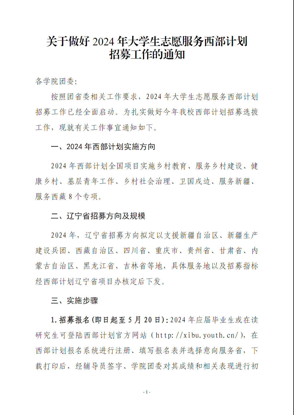关于做好2024年辽宁省大学生志愿服务西部计划宣传招募工作的通知