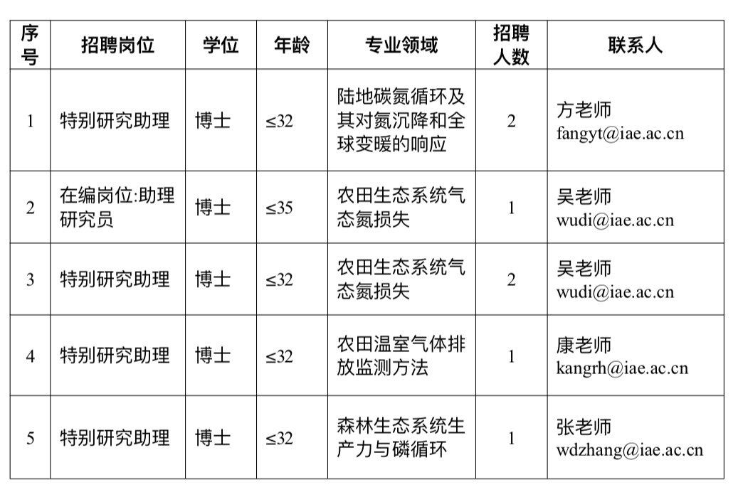 因科研工作需要,中国科学院沈阳应用生态研究所“生态系统碳氮循环和稳定同位素技术应用”大团队拟招聘特别研究助理、助理研究员若干名。主要从事森林生态系统氮、磷循环、农田生态系统温室气体排放等领域相关研究。