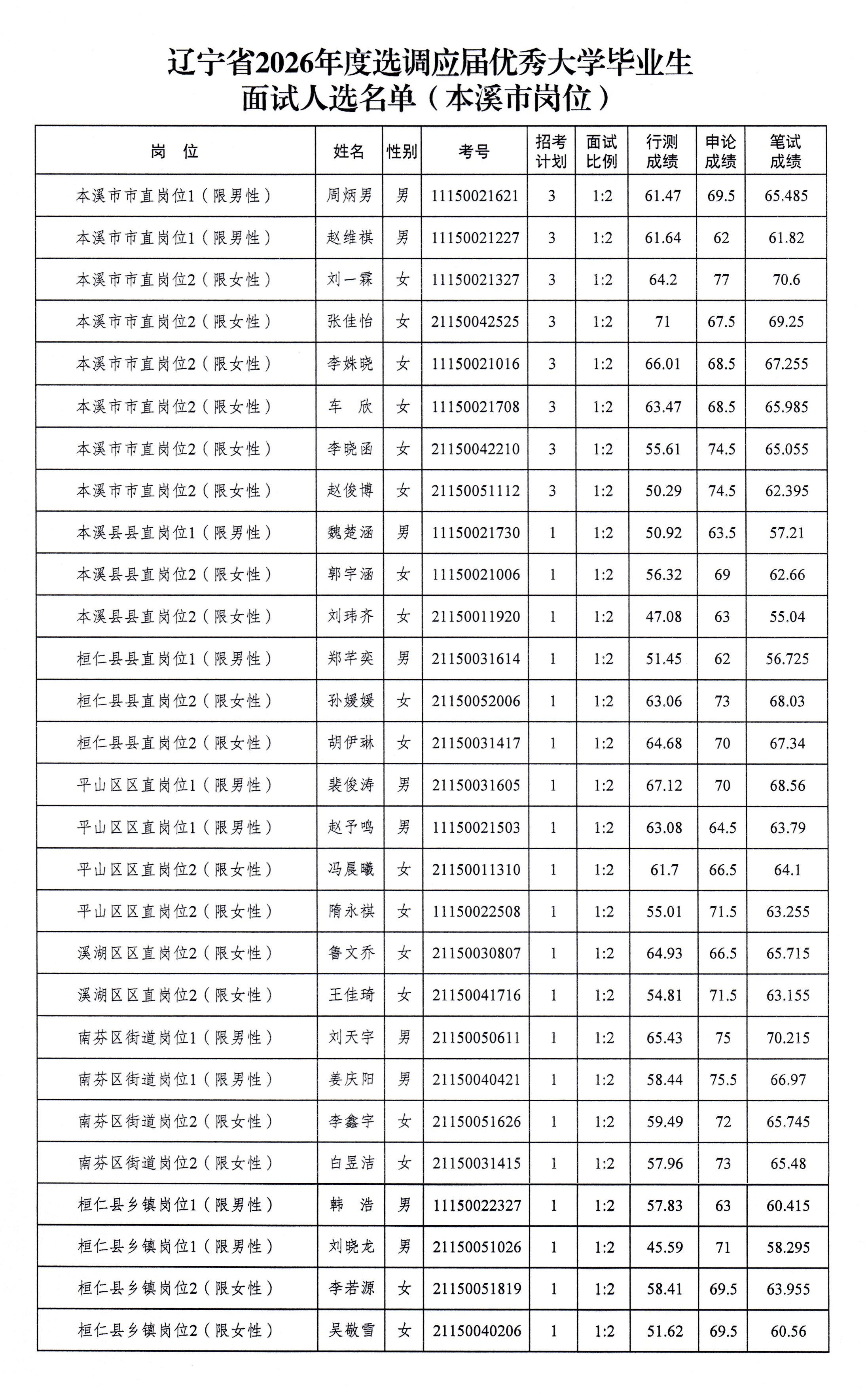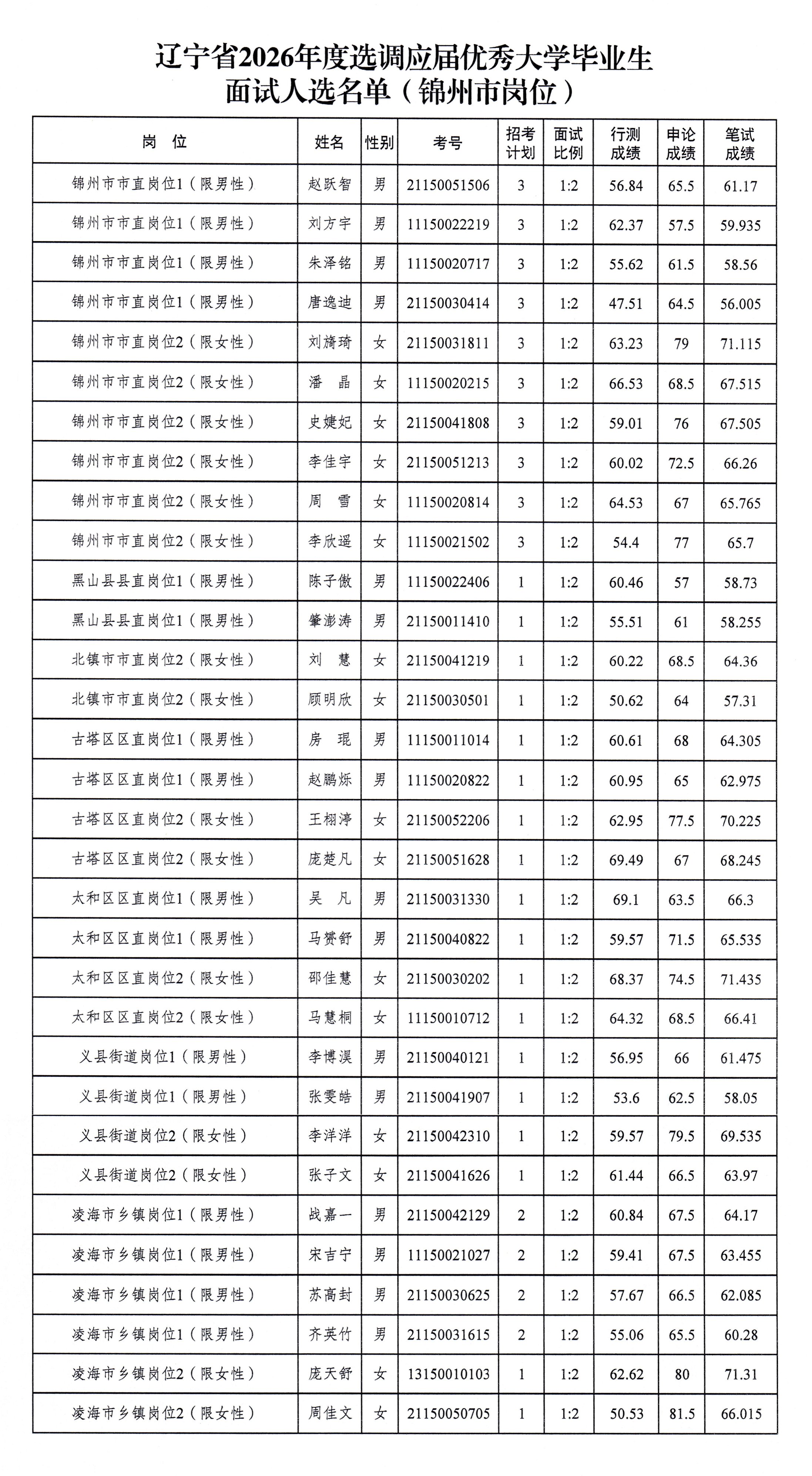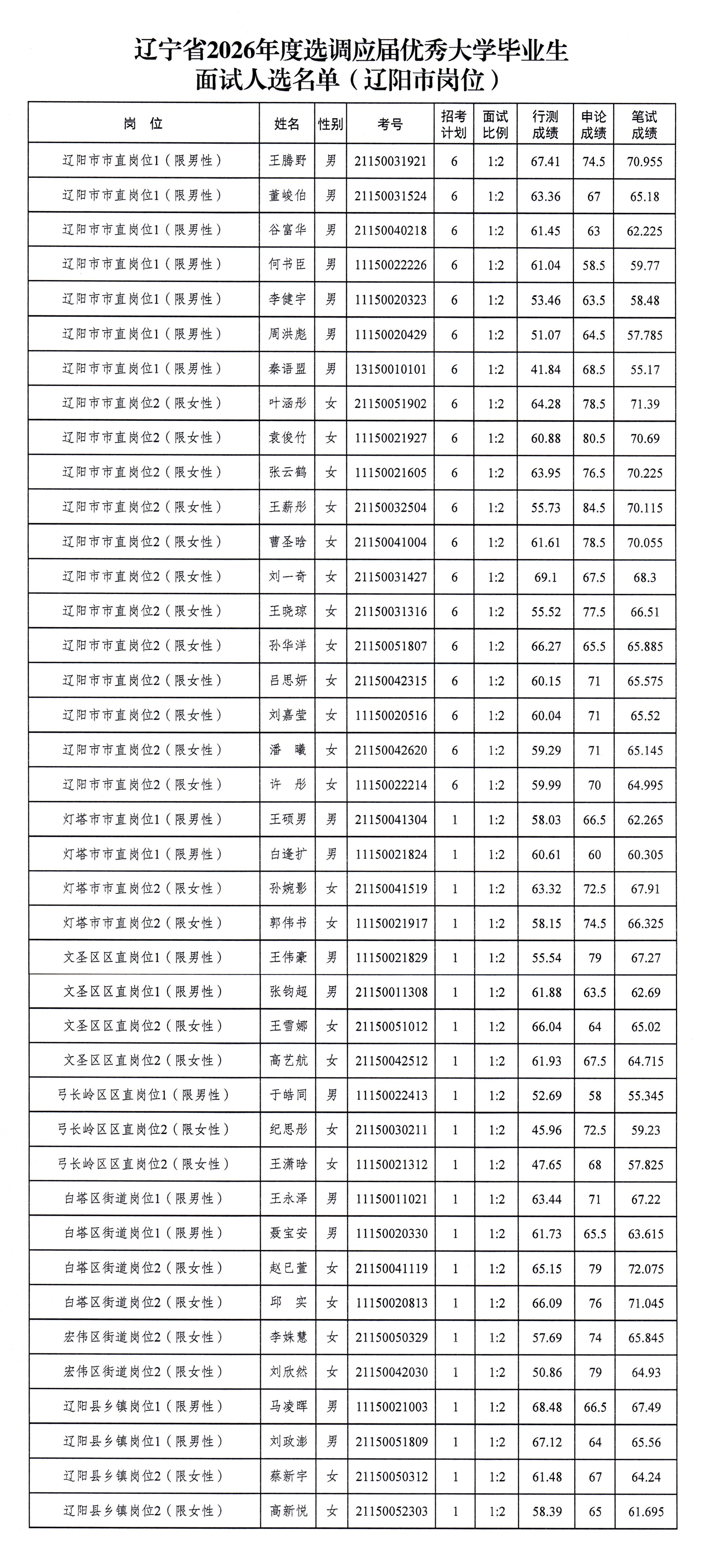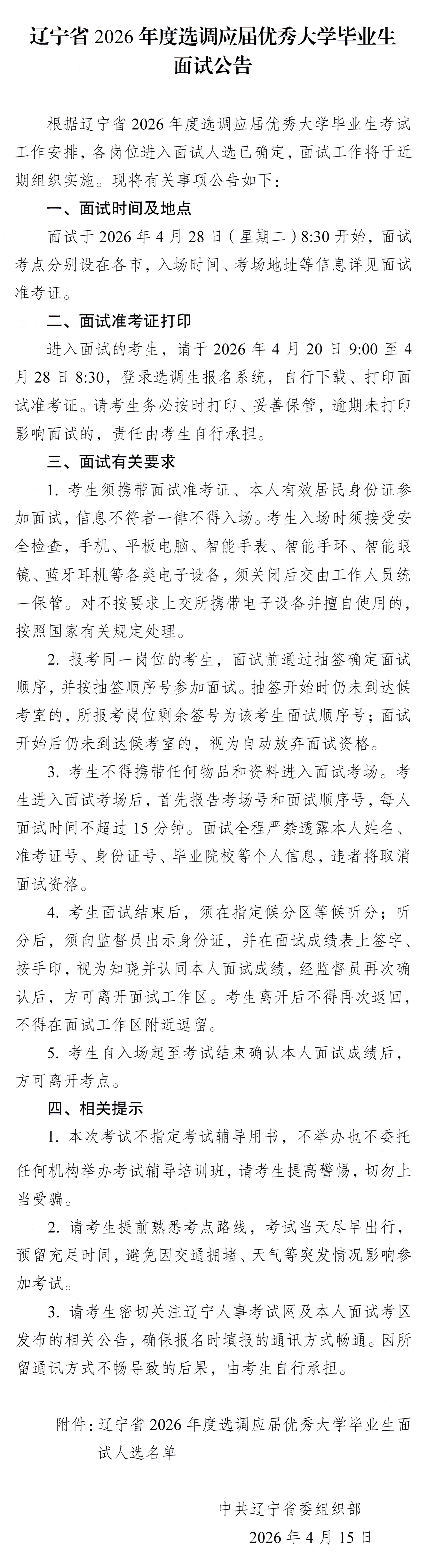 辽宁省2026年度选调应届优秀大学毕业生面试公告