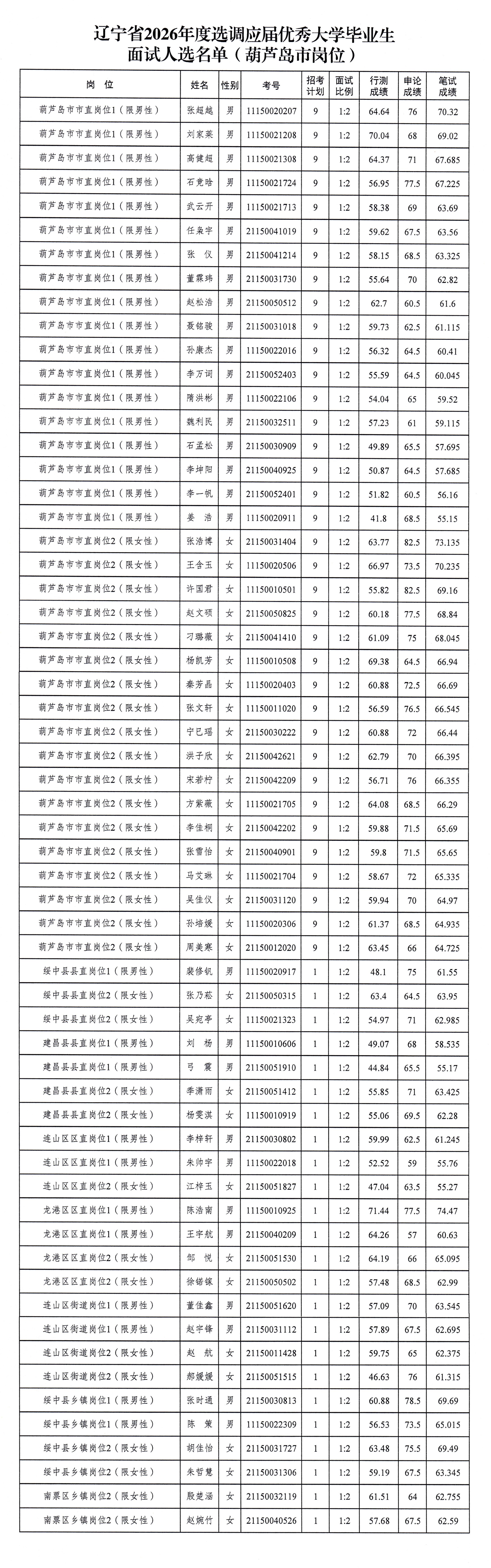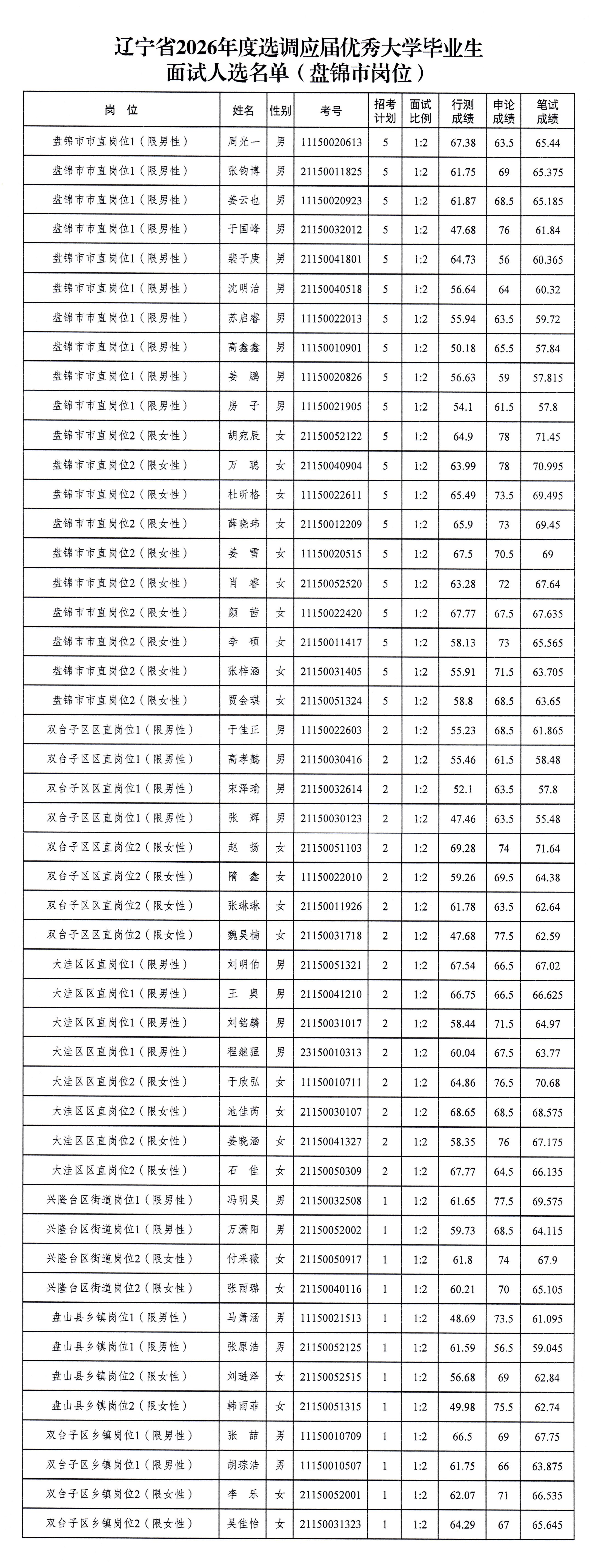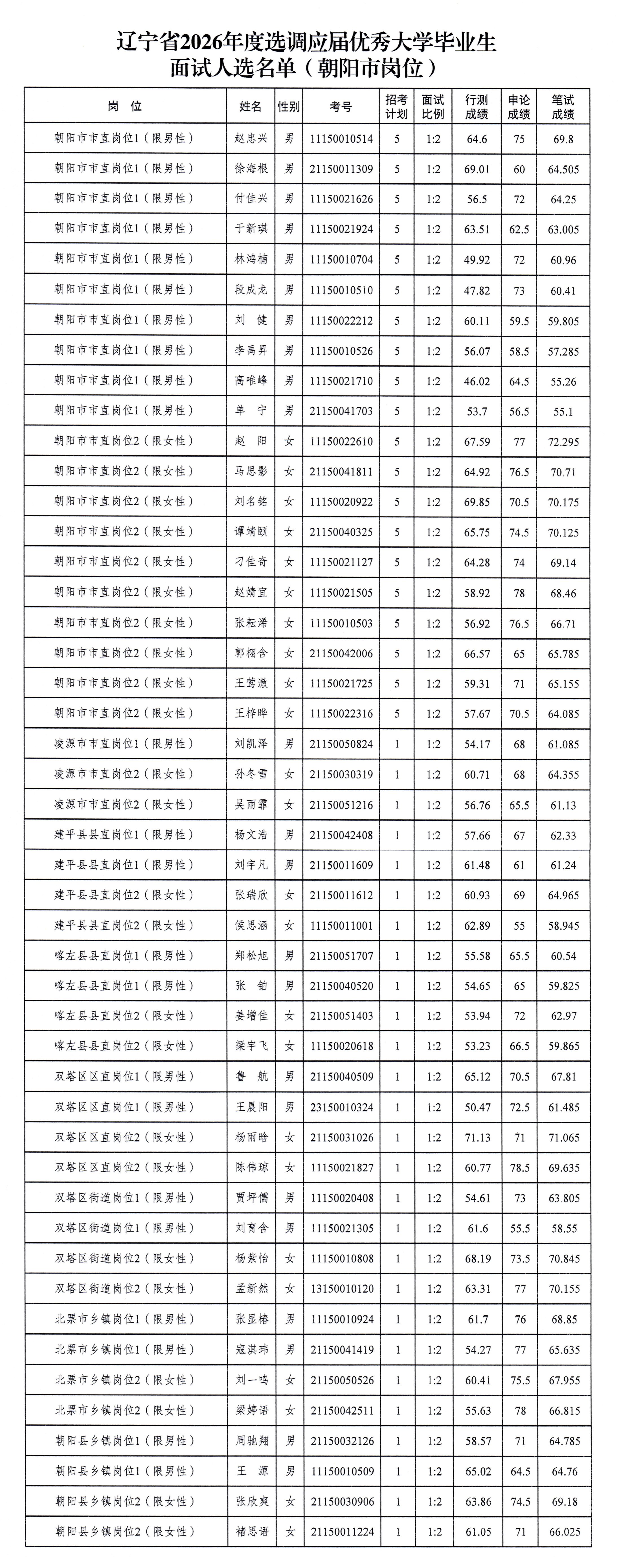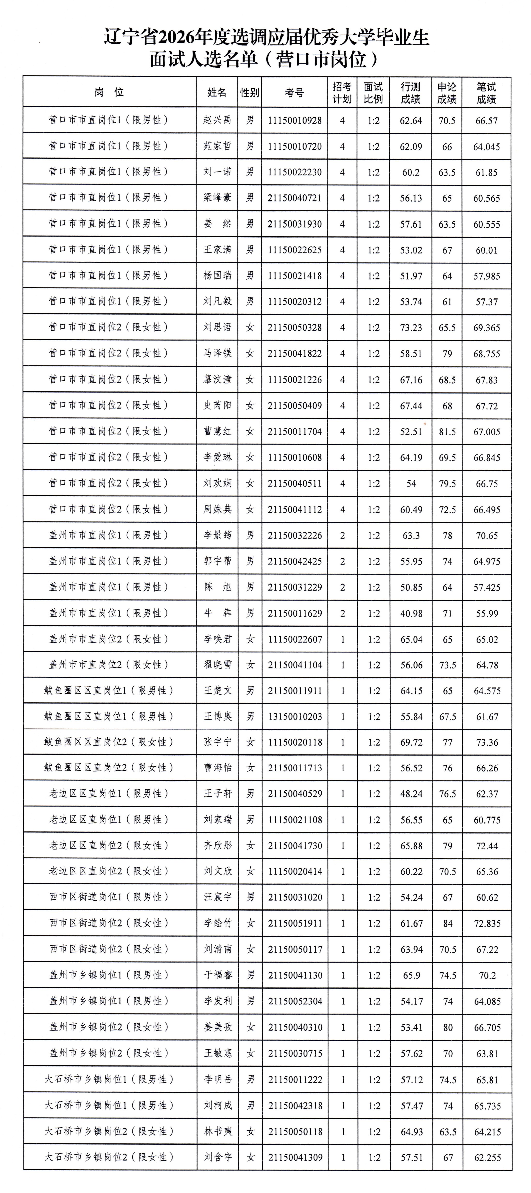 辽宁省2026年度选调应届优秀大学毕业生面试公告