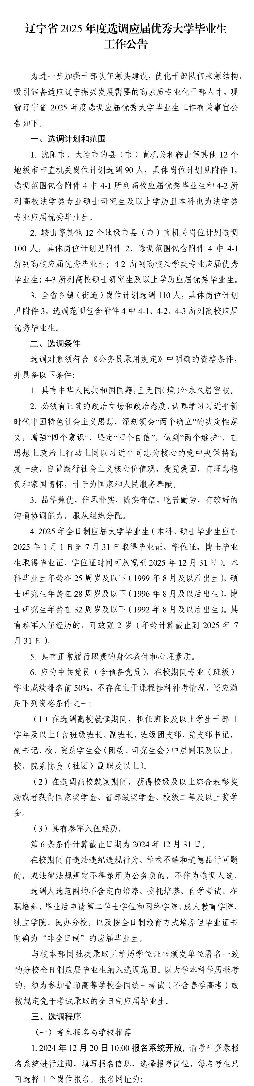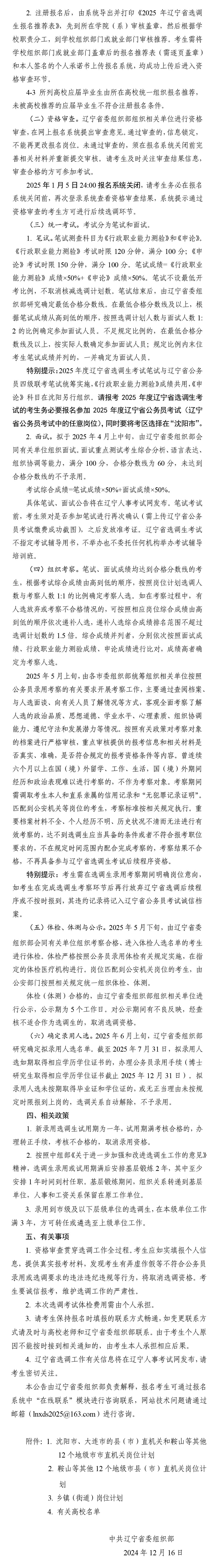辽宁省2025年度选调应届优秀大学毕业生300人工作公告