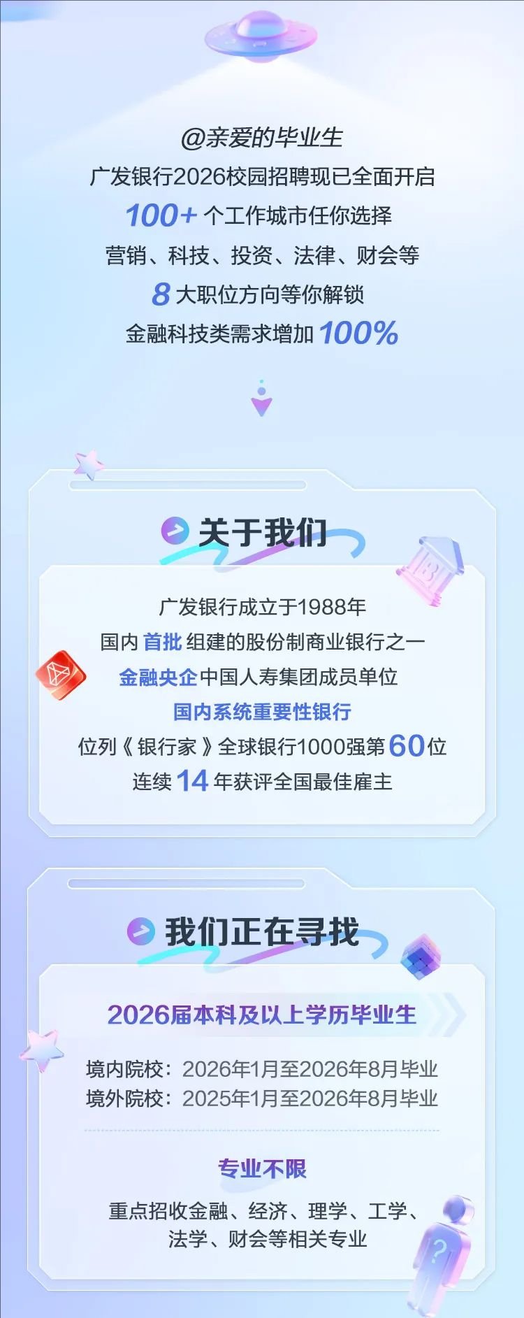 广发银行2026年度校园招聘正式启动!
