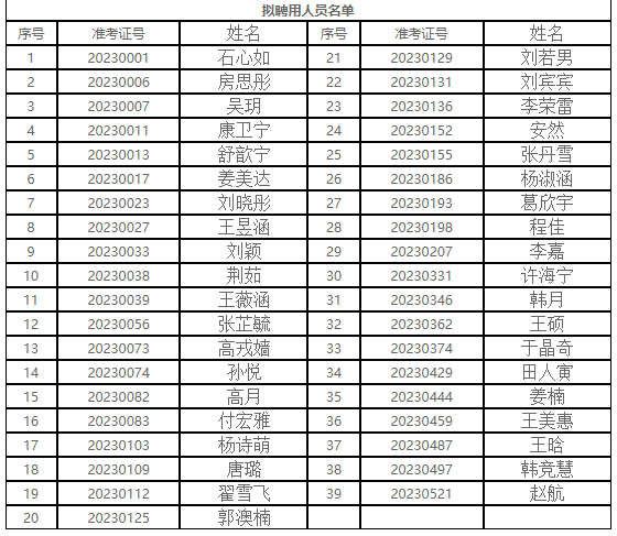 本次招聘工作经过自主报名、资格审核、理论考试、技能考试、面试、体检、公示等环节,确定拟聘用人员(见附件)。