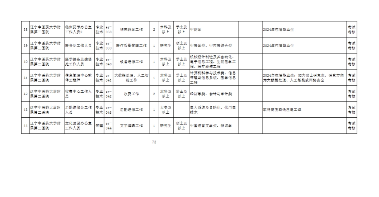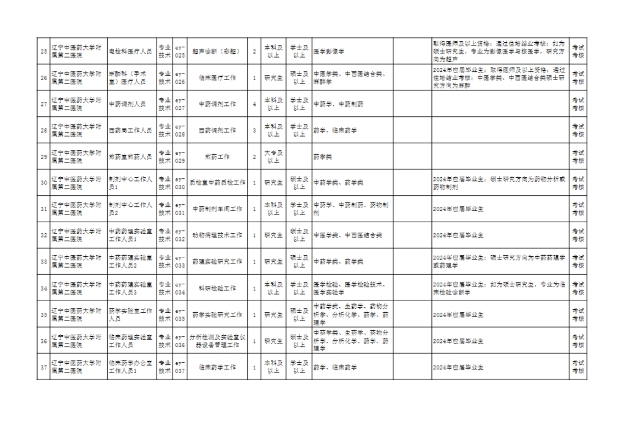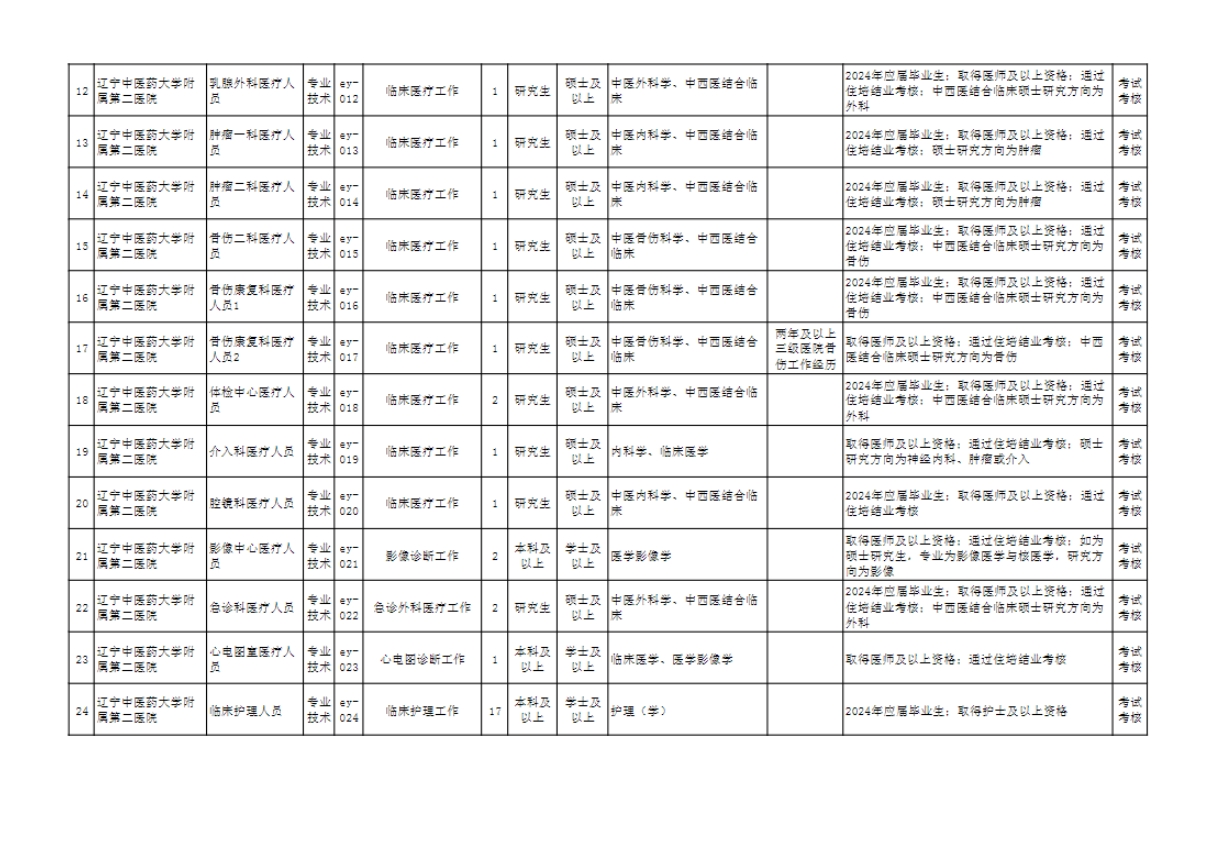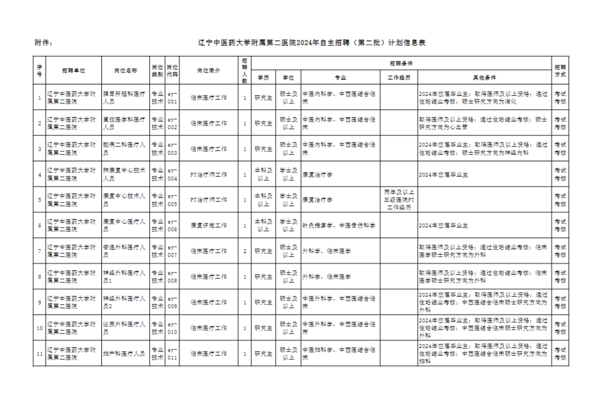 (五)岗位所需要的其他条件,详见附件《辽宁中医药大学附属第二医院2024年自主招聘(第二批)计划信息表》。
