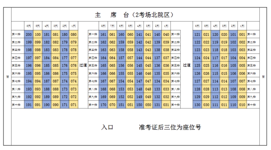 2.因本次考生人数较多,请各位考生提前参看考场座位图(详见附件),以便进入考场后迅速找到座位,座位号为准考证后三位。