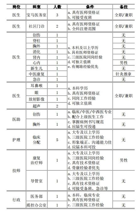 驻厂医务室医生、社区门诊医生、临床医生、超声医生、放射诊断医生、临床护士、导管室技师、康复治疗师、医疗行政专干