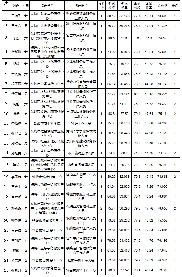 2024年辽宁省面向社会集中公开招聘铁岭市事业单位拟聘人员名单