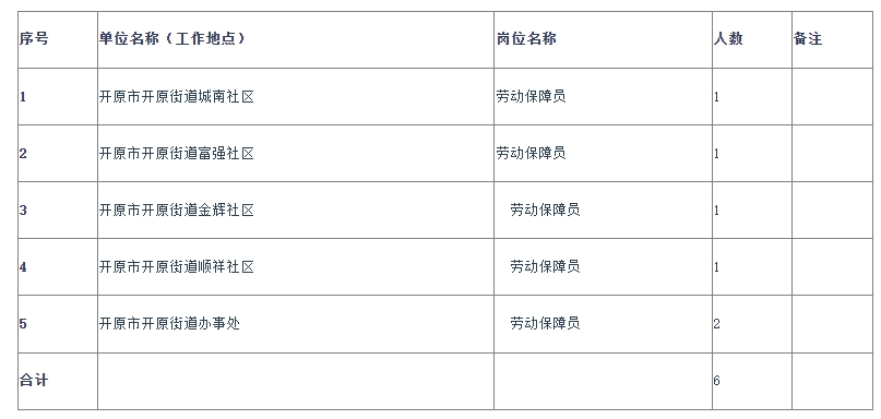 根据工作需要,开原市5家单位招聘公益性岗位工作人员6人,现具体公告如下: