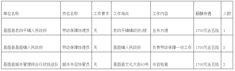 根据工作需要,昌图县3家单位补充招聘公益性岗位工作人员5人,现具体公告如下: