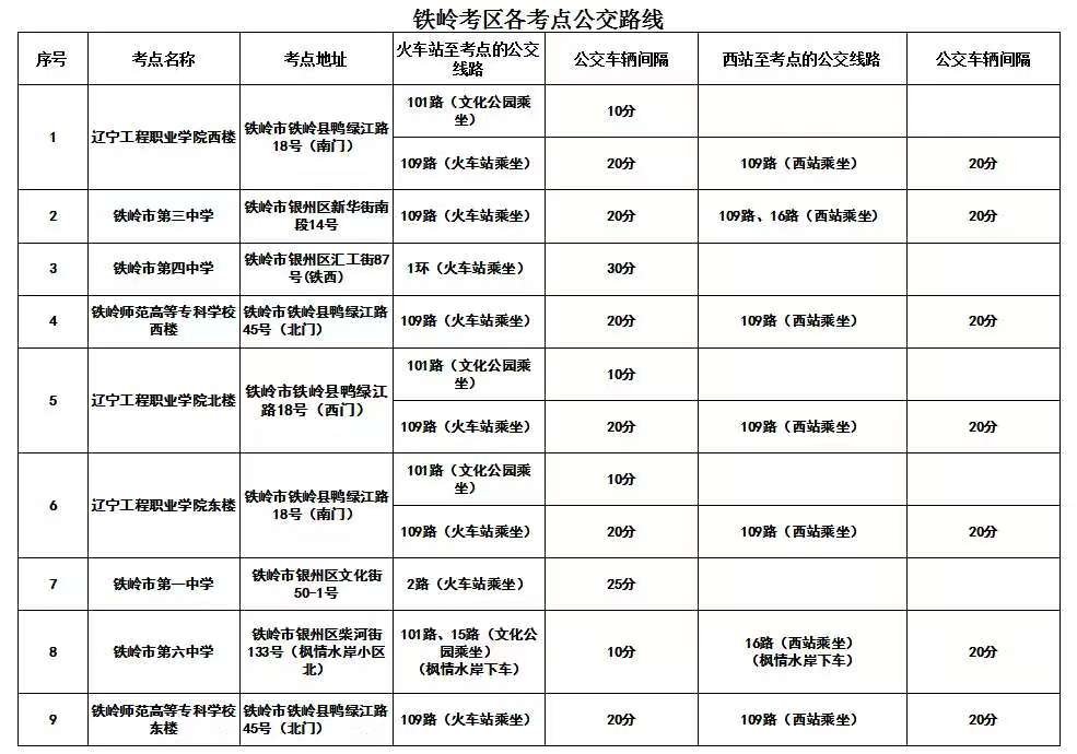 ※本次考试铁岭考区共设置9个考点,为防止走错,请应试人员注意区分以下考点名称:“辽宁工程职业学院西楼”“辽宁工程职业学院东楼”“辽宁工程职业学院北楼”;“铁岭师范高等专科学校西楼”“铁岭师范高等专科学校东楼”。