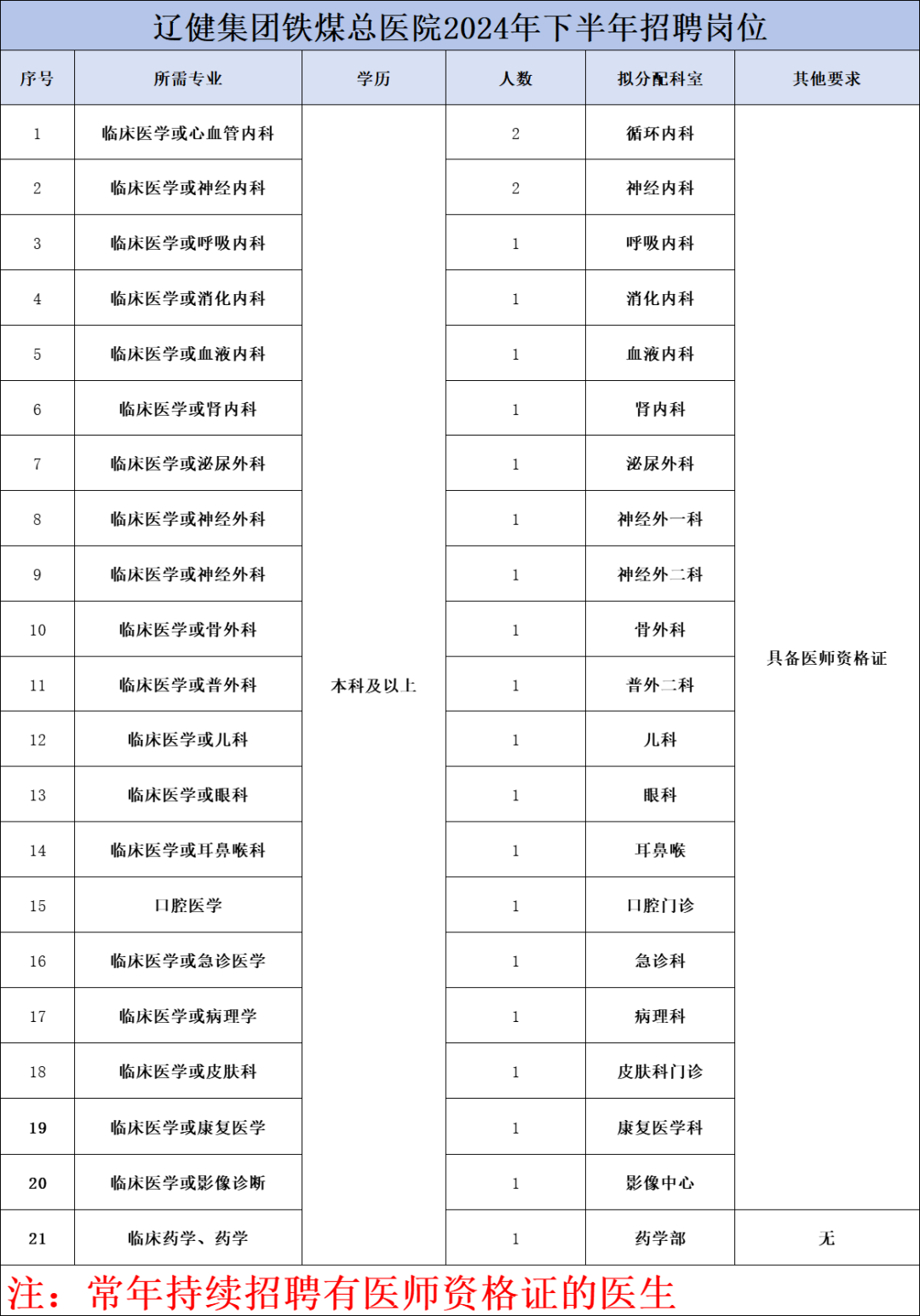 医院现隶属于华润健康集团,因学科发展、人才梯队建设需要,面向社会,公开招聘以下岗位。