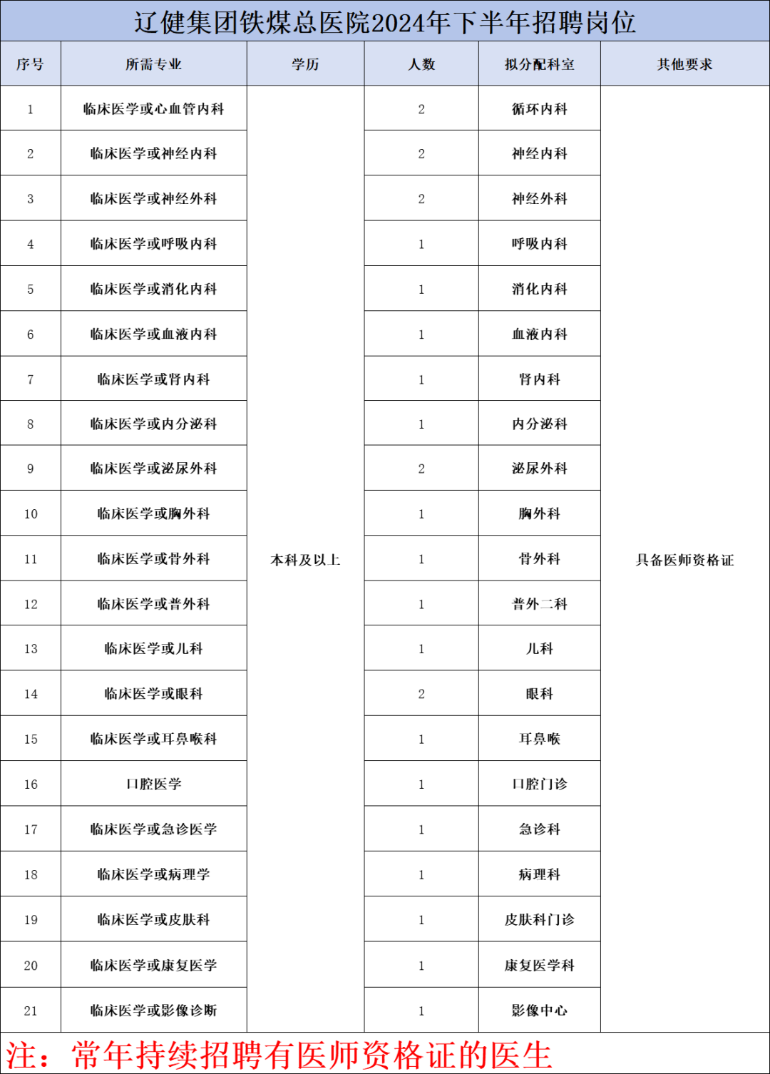 医院现隶属于华润健康集团,因学科发展、人才梯队建设需要,面向社会,公开招聘以下岗位。