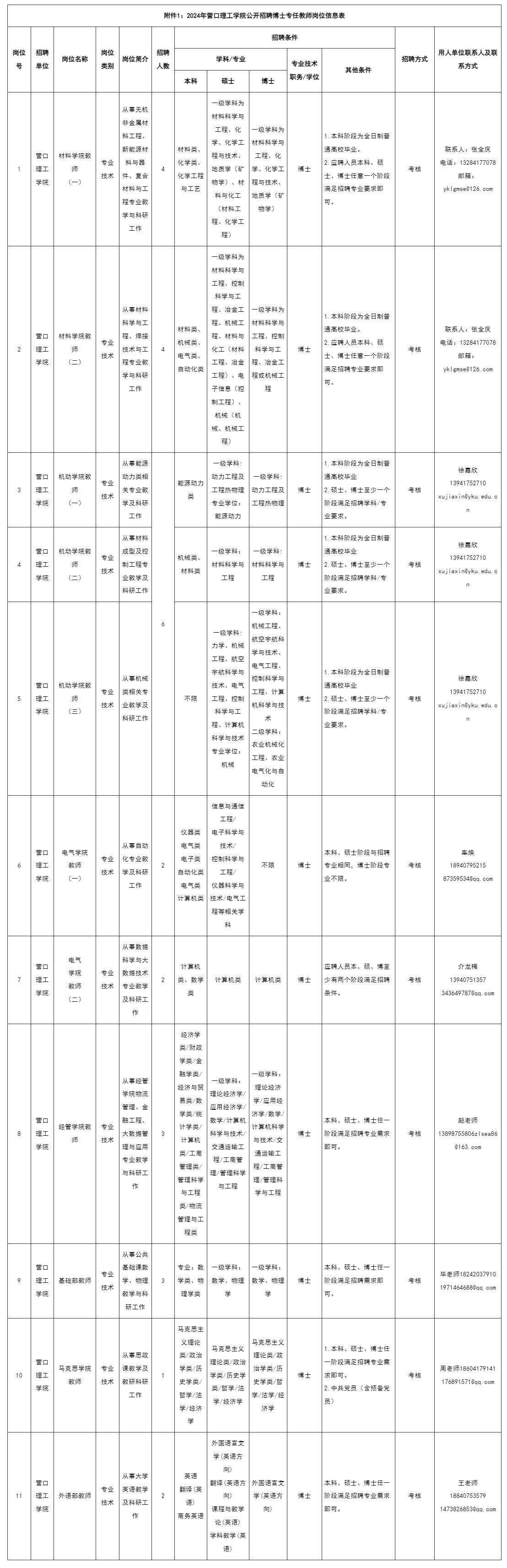 附件《2024年营口理工学院公开引进高层次人才岗位信息表》