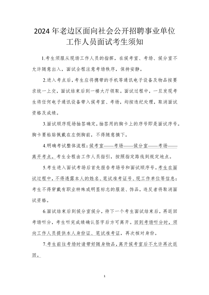 2024年老边区面向社会公开招聘事业单位工作人员面试考生须知
