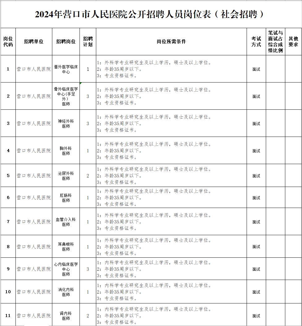 通过鲅天下、营口市人民医院官网和微信公众号等多种形式向社会公开发布招聘公告,报名后请考生关注报名考生微信群所发布的笔试、面试的时间、地点等相关内容。